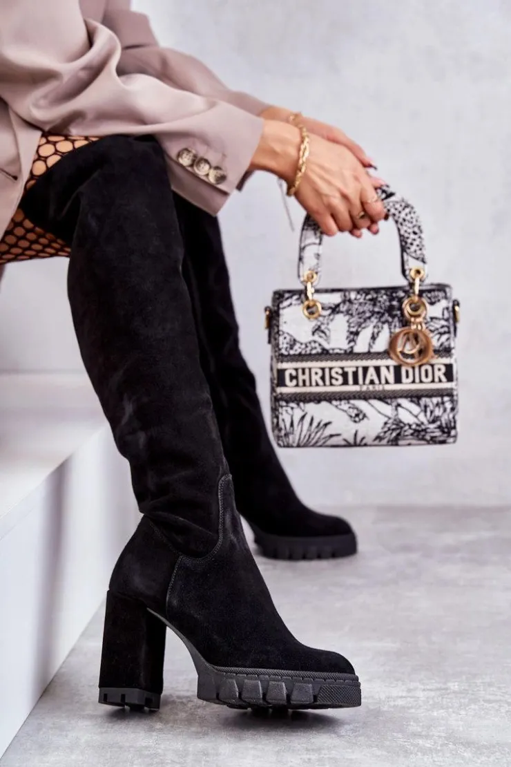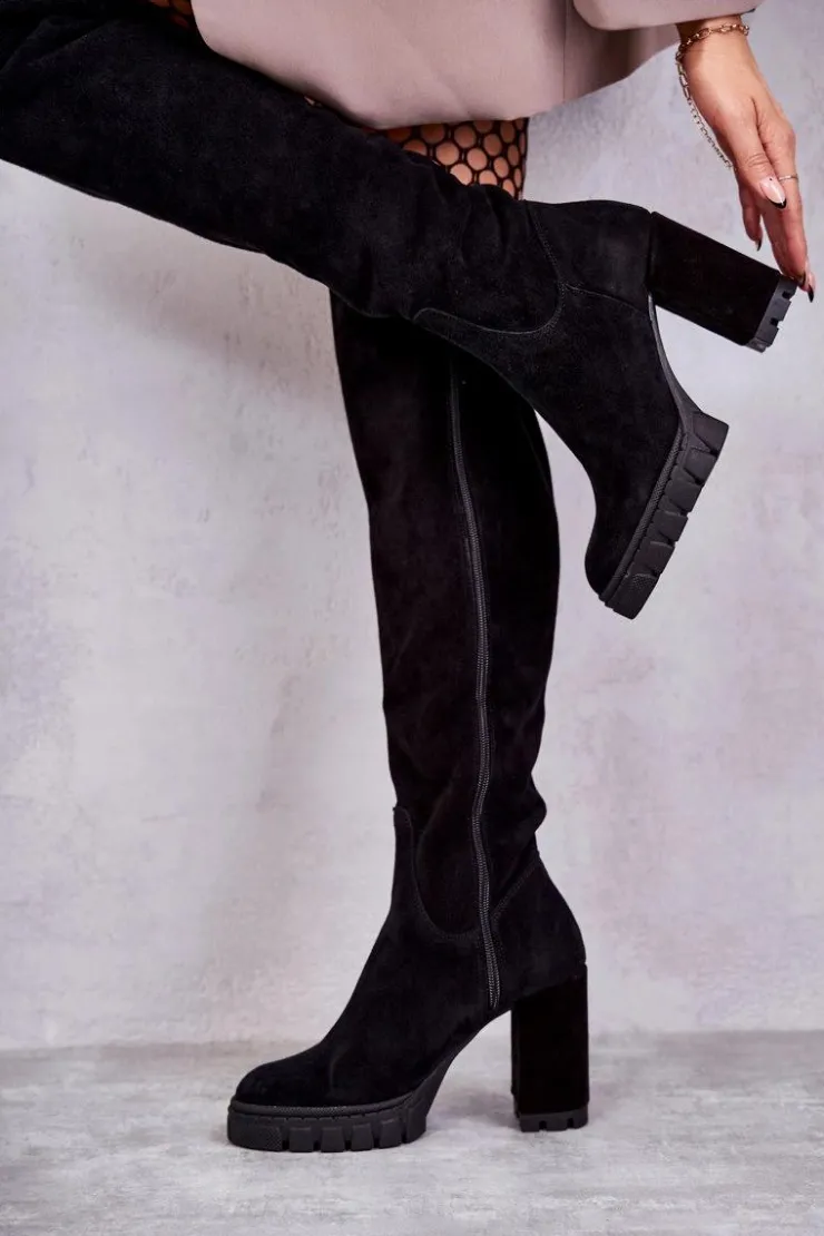 Damskie Boto Modne Zamszowe Kozaki Muszkieterki Czarne Estrela