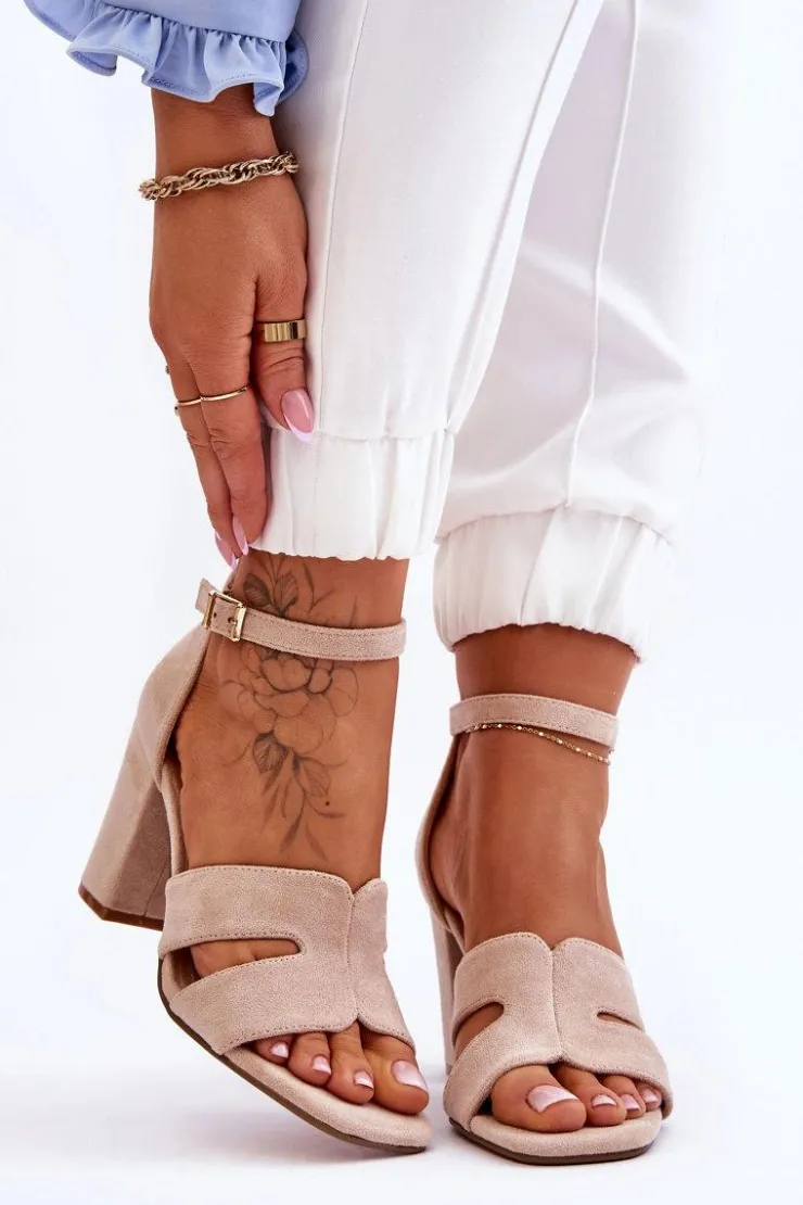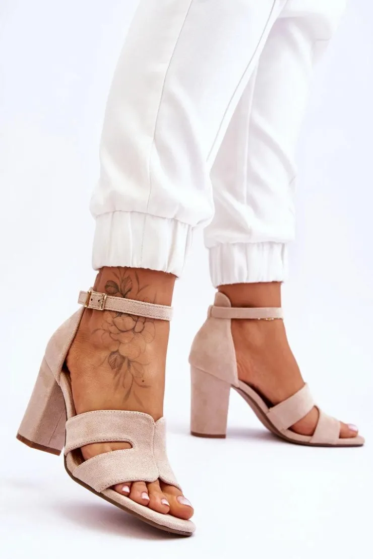 Sandały na obcasie posiadają wkładkę wykonaną z naturalnej skóry, która zapewnia stopom długotrwałą wygodę. Ciesz się komfortem i swobodą podczas różnych uroczystości czy spotkań ze znajomymi. Eleganckie sandały posiadają zapięcie na sprzączkę, dzięki temu można je idealnie dopasować do tęgości stopy. Cholewka butów została wykonana z wysokiej jakości eko zamszu. Sandały z odkrytymi palcami nigdy nie wyjdą z mody, dlatego powinnaś zakupić ten model! Przy wyborze rozmiaru prosimy sugerować się tabelą rozmiarów.