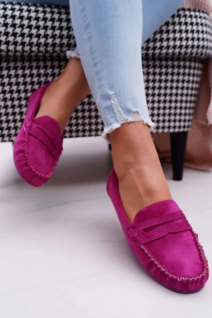 Outlet Boto Damskie Zamszowe Klapki Lewski Shoes 3226 Fuksja