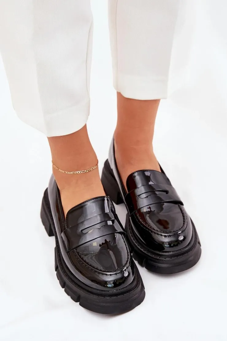 Mokasyny wykonane z eko skóry, łączące klasyczny styl z nowoczesnym wyglądem. Osadzone na platformie i płaskim obcasie, zapewniają wygodę i stabilność. Model posiada zaokrąglone noski i paseczek z wycięciem, który nadaje im wyjątkowego charakteru. Idealne do codziennych stylizacji! Przy wyborze rozmiaru prosimy sugerować się tabelą rozmiarów.