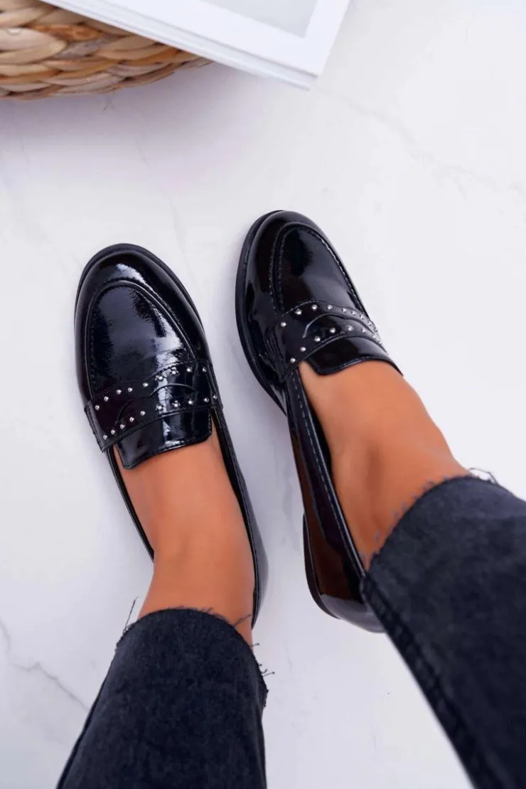 Damskie Boto Mokasyny Damskie Lakierowane Loafery Lordsy Czarne Tenes