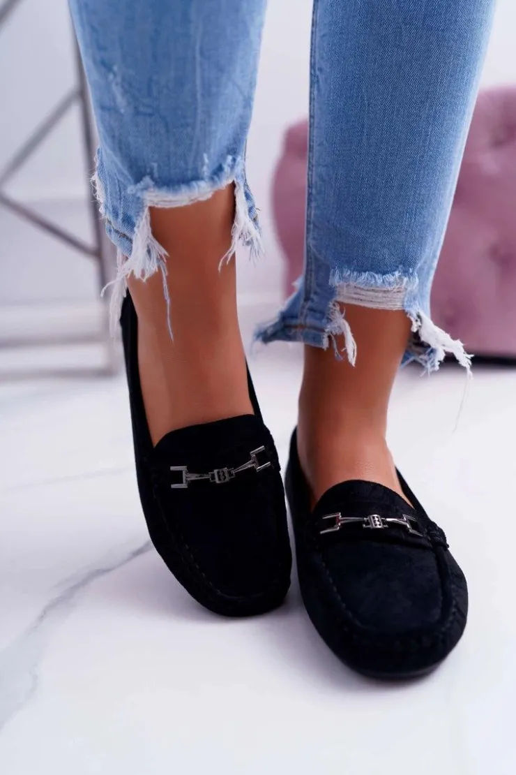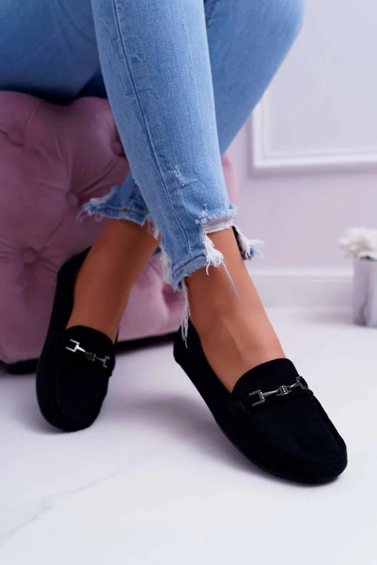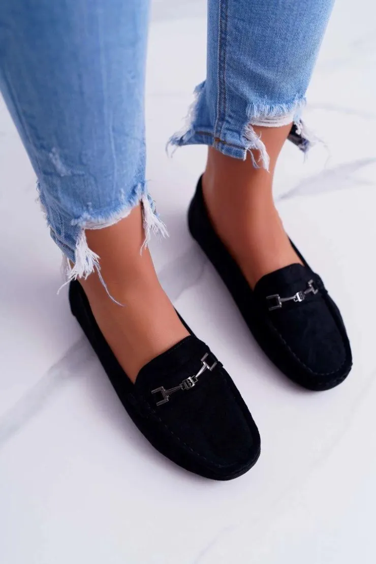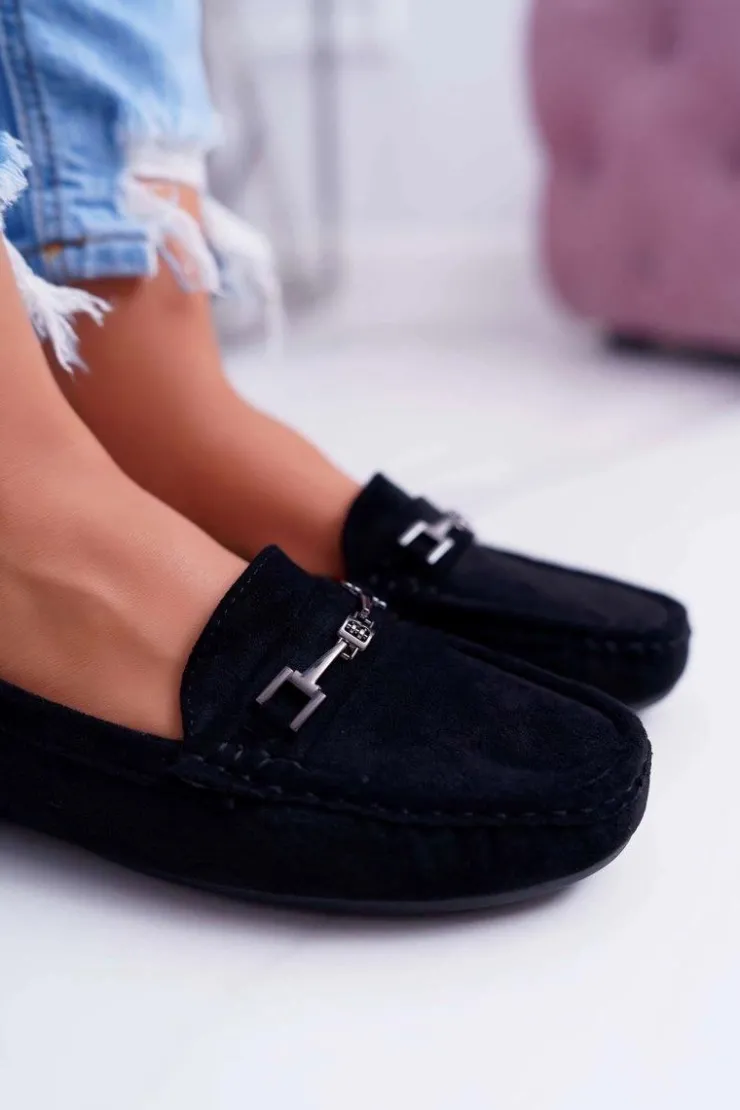 Damskie Boto Mokasyny Damskie Lekkie Eko-zamsz Czarne Think