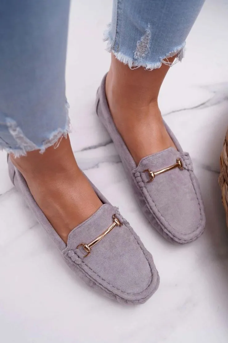 Damskie Boto Mokasyny Damskie Szare Zamszowe Sonnero