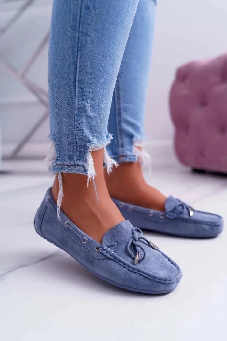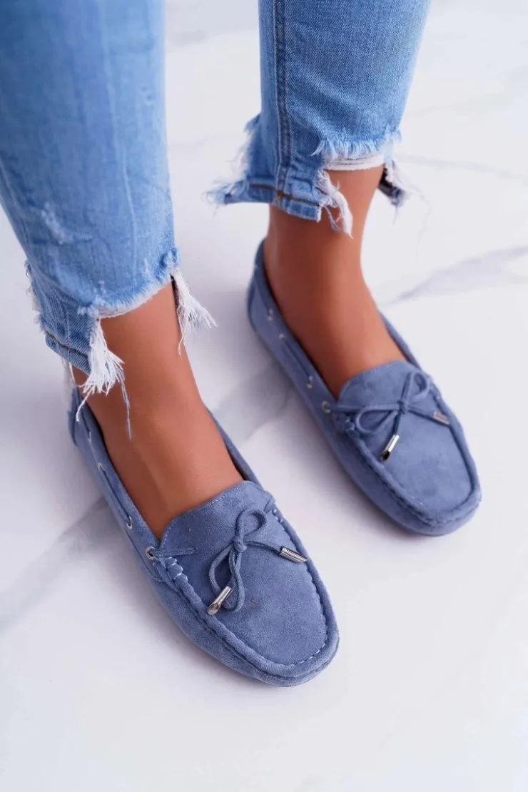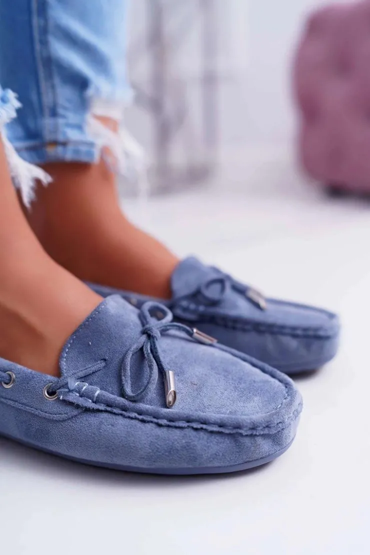 Damskie Boto Mokasyny Damskie Wygodne Eko-zamsz Niebieskie Memfi