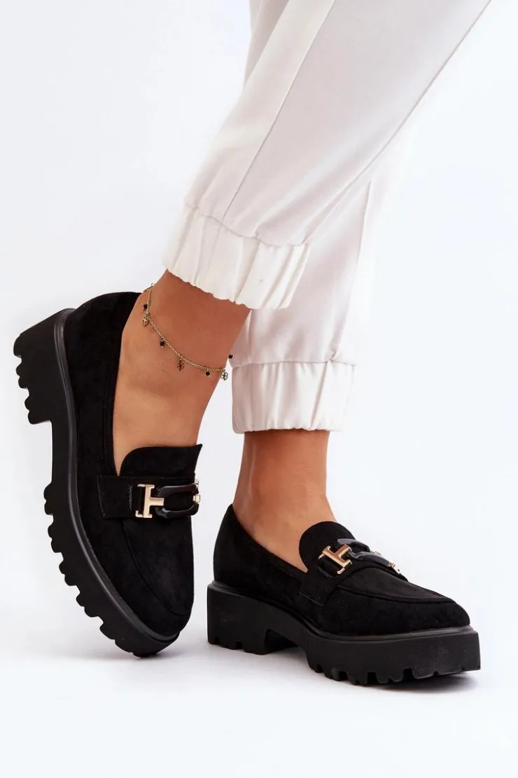 Mokasyny wykonane z miękkiego eko zamszu. Posiadają z przodu pasek z ozdobą. Wkładka ze skóry ekologicznej zadba o Twój komfort. Mokasyny osadzono na płaskim obcasie, dzięki któremu są niezwykle stabilne. Idealny model do wielu wiosenno-letnich stylizacji! Koniecznie powinnaś je mieć! Przy wyborze rozmiaru prosimy sugerować się tabelą rozmiarów.