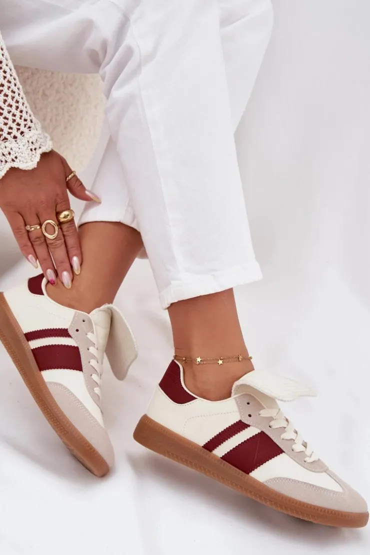 Damskie sneakersy wykonane z eko skóry. Charakteryzują się unikalnym, wywiniętym językiem, który nadaje im nowoczesny wygląd. Oferują komfort dzięki miękkiej wkładce z piankowego tworzywa, która zapewnia doskonałą amortyzację i wygodę przez cały dzień. Sznurowane, co pozwala na idealne dopasowanie do stopy. Te sneakersy to świetny wybór na co dzień. Przy wyborze rozmiaru prosimy kierować tabelą rozmiarów.