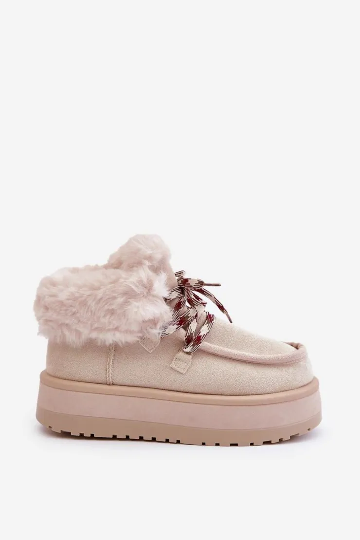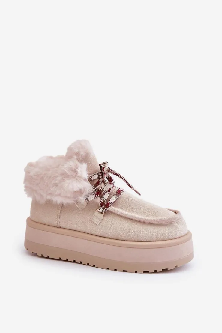 Damskie Boto Niskie Śniegowce Damskie Na Platformie Z Futerkiem Jasnobeżowe Neathren