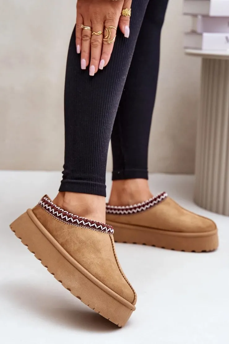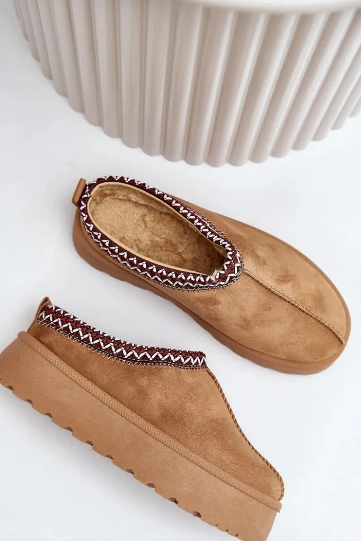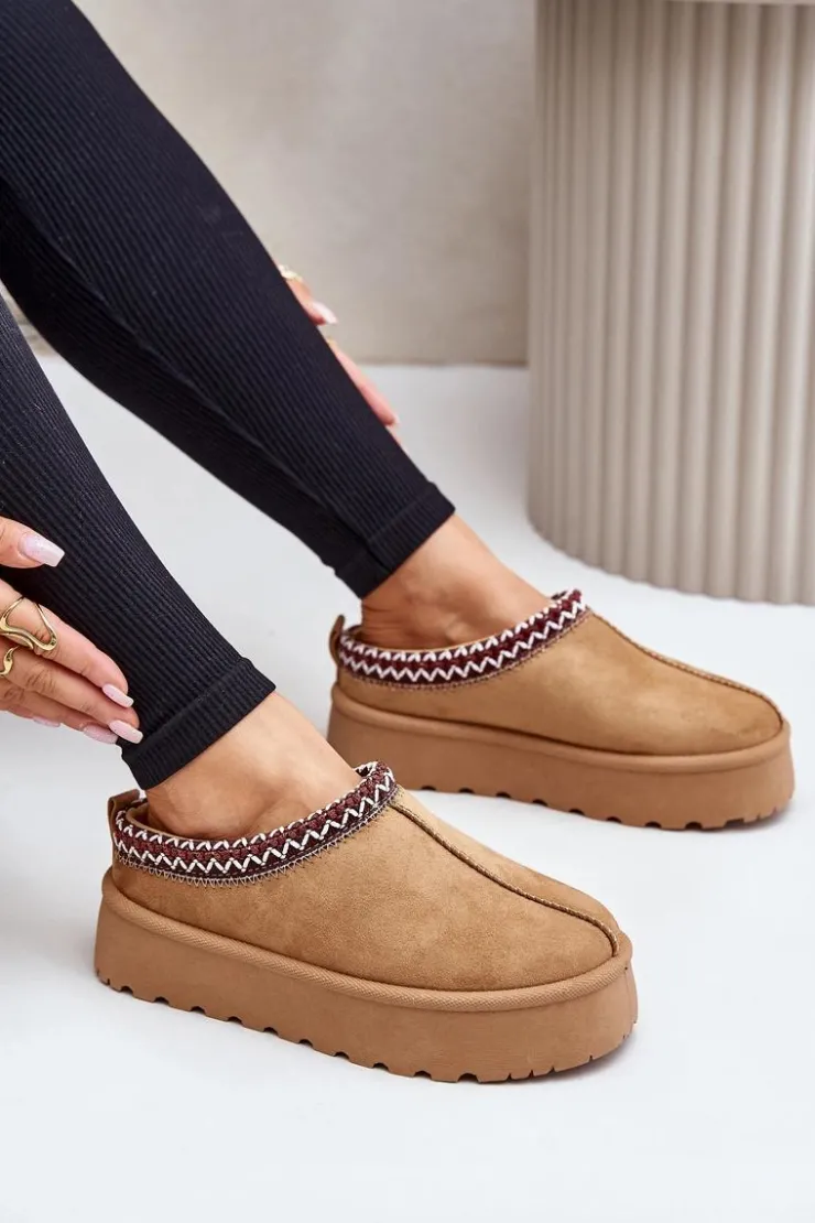 Damskie śniegowce ozdobione dekoracyjną lamówką. Wykonane z ekologicznego zamszu, są doskonałym wyborem na chłodniejsze dni. Osadzone na platformie, oferują nie tylko stylowy wygląd, ale także komfort oraz ochronę przed zimnem. Wnętrze butów ocieplane jest miękkim futerkiem, co zapewnia ciepło i wygodę podczas użytkowania. Te śniegowce stanowią idealne połączenie funkcjonalności i eleganckiego wyglądu, idealne na zimowe spacery. Przy wyborze rozmiaru prosimy kierować tabelą rozmiarów.