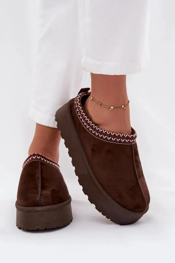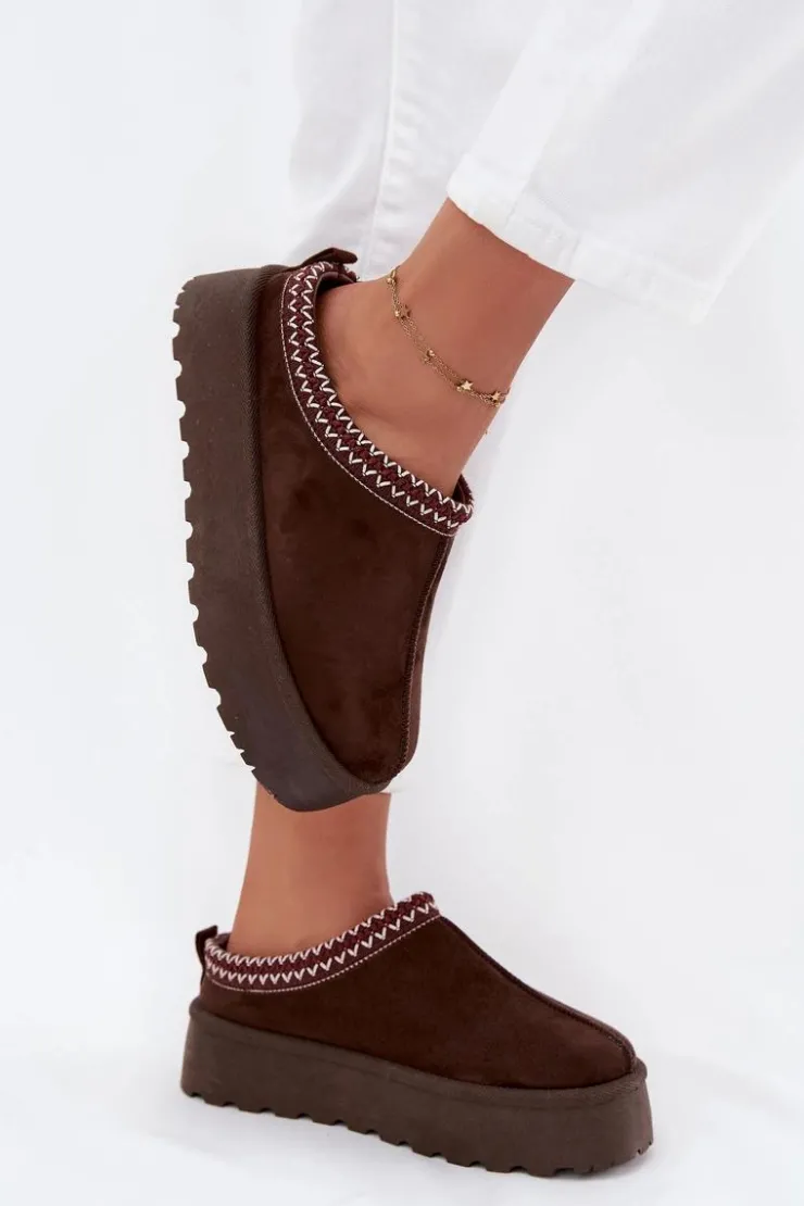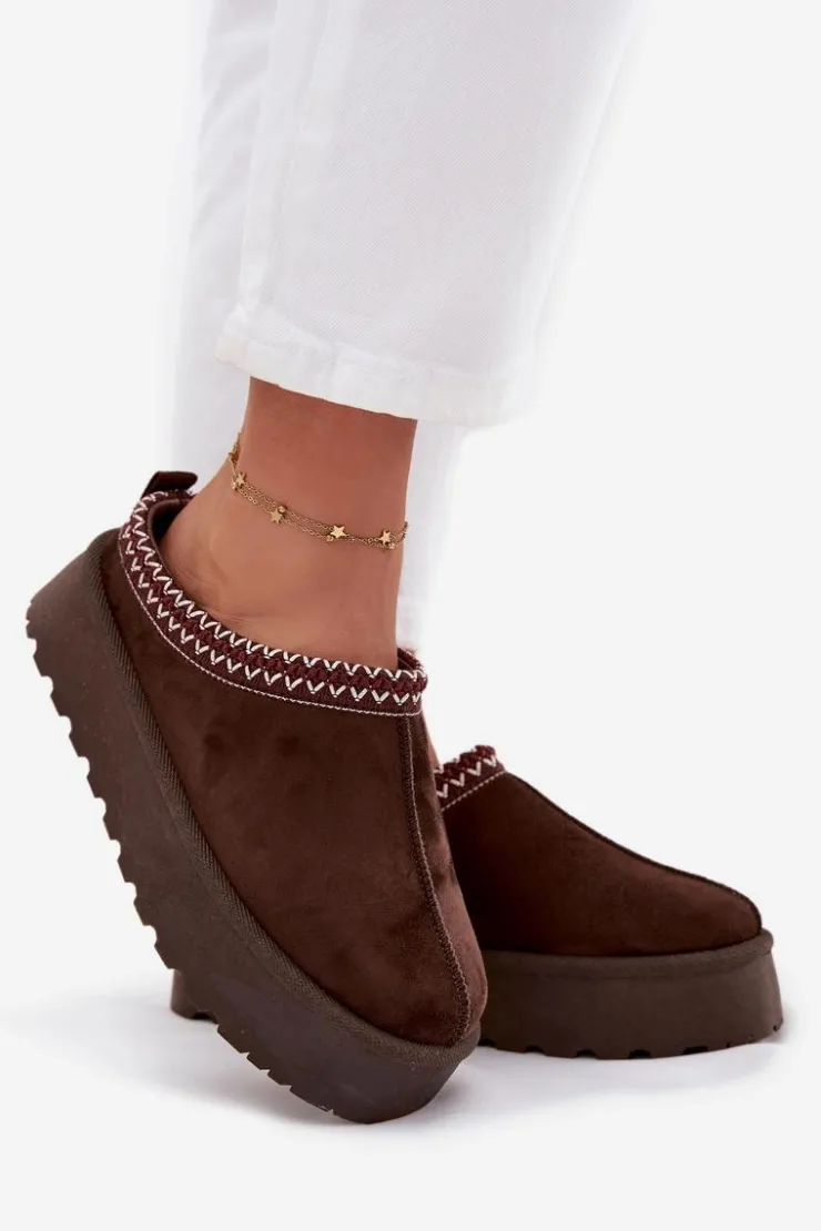 Damskie śniegowce ozdobione dekoracyjną lamówką. Wykonane z ekologicznego zamszu, są doskonałym wyborem na chłodniejsze dni. Osadzone na platformie, oferują nie tylko stylowy wygląd, ale także komfort oraz ochronę przed zimnem. Wnętrze butów ocieplane jest miękkim futerkiem, co zapewnia ciepło i wygodę podczas użytkowania. Te śniegowce stanowią idealne połączenie funkcjonalności i eleganckiego wyglądu, idealne na zimowe spacery. Przy wyborze rozmiaru prosimy kierować tabelą rozmiarów.