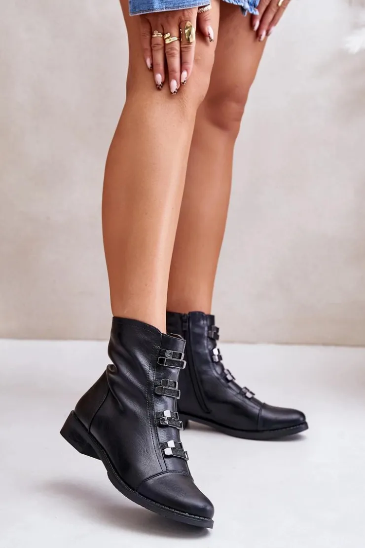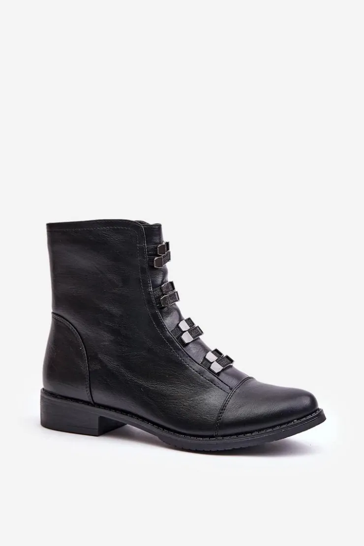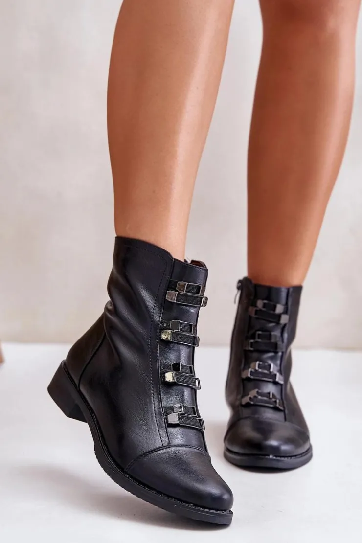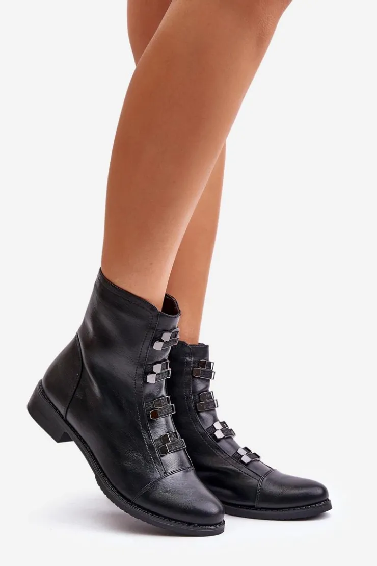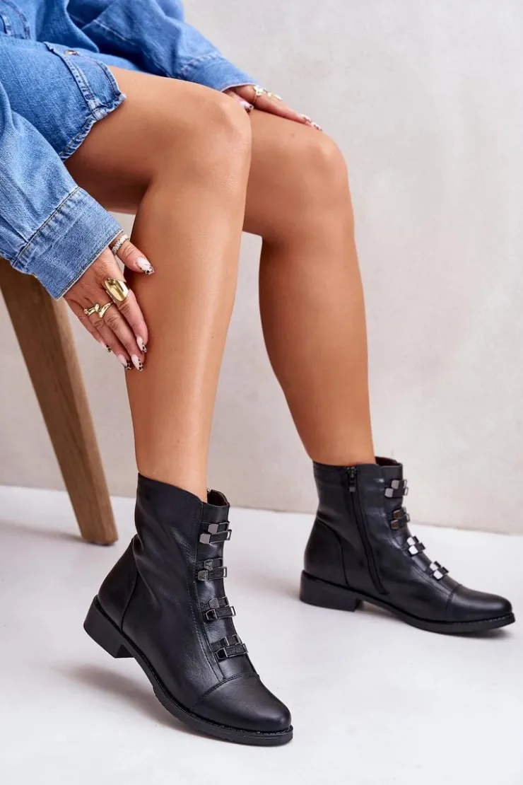 Botki marki Jezzi wykonane z eko skóry, które łączą styl z wygodą. Osadzone na płaskim obcasie, z zaokrąglonymi noskami, zapewniają komfort noszenia na co dzień. Zapinane na zamek, co ułatwia zakładanie i zdejmowanie. Model ten wyróżnia się ozdobnymi gumkami z przodu. Wnętrze ocieplane kocem obuwniczym. Te botki to świetny wybór na jesienne i zimowe stylizacje.Przy wyborze rozmiaru prosimy sugerować się tabelą rozmiarów.