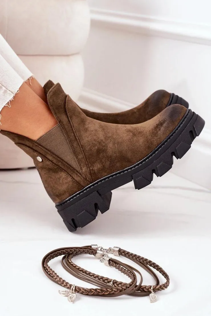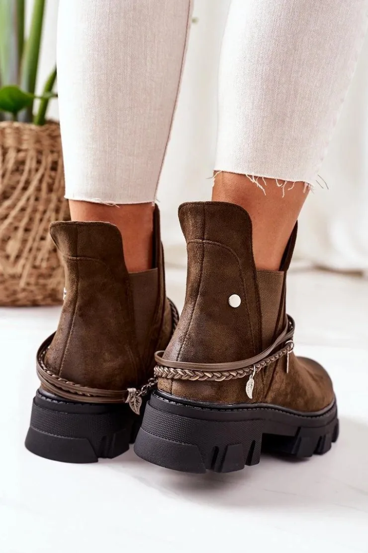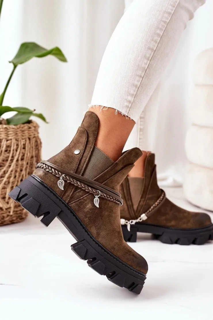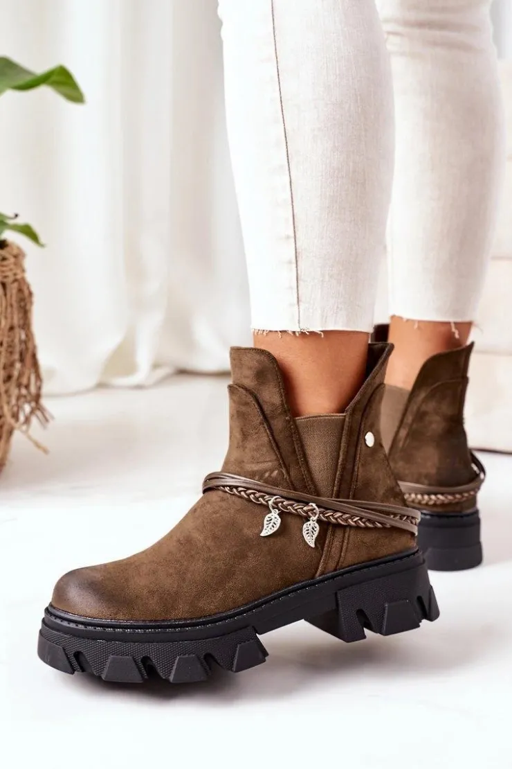 Sztyblety damskie wykonane z eko zamszu. Wnętrze botków ocieplone jest miłym w dotyku kocem obuwniczym. Dekoracyjne paski są odpinane. Przy wyborze rozmiaru prosimy sugerować się tabelą rozmiarów.