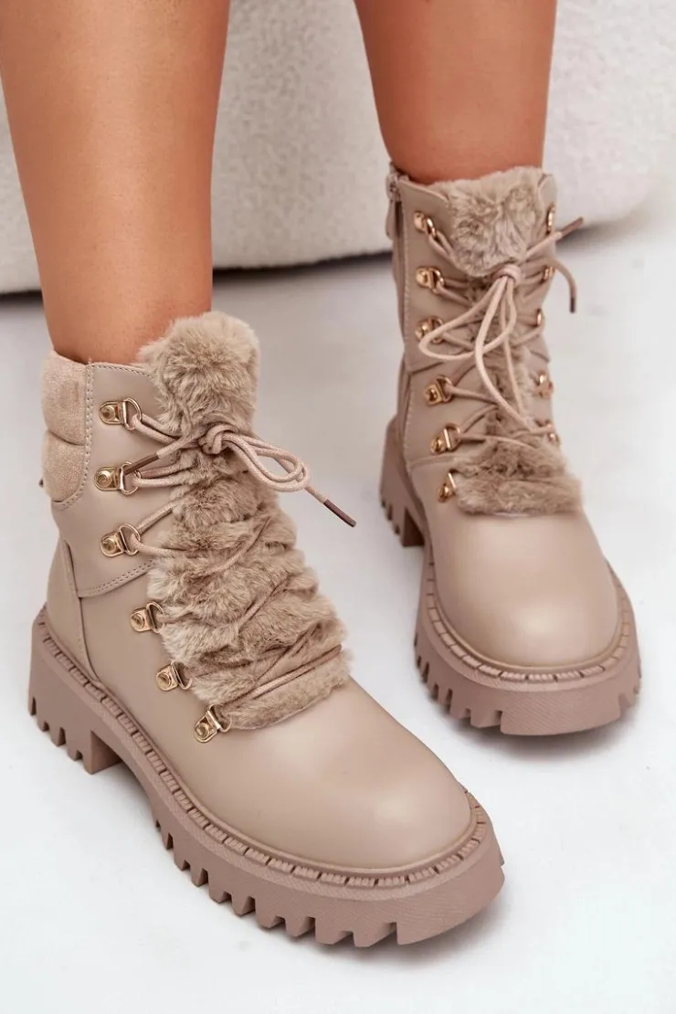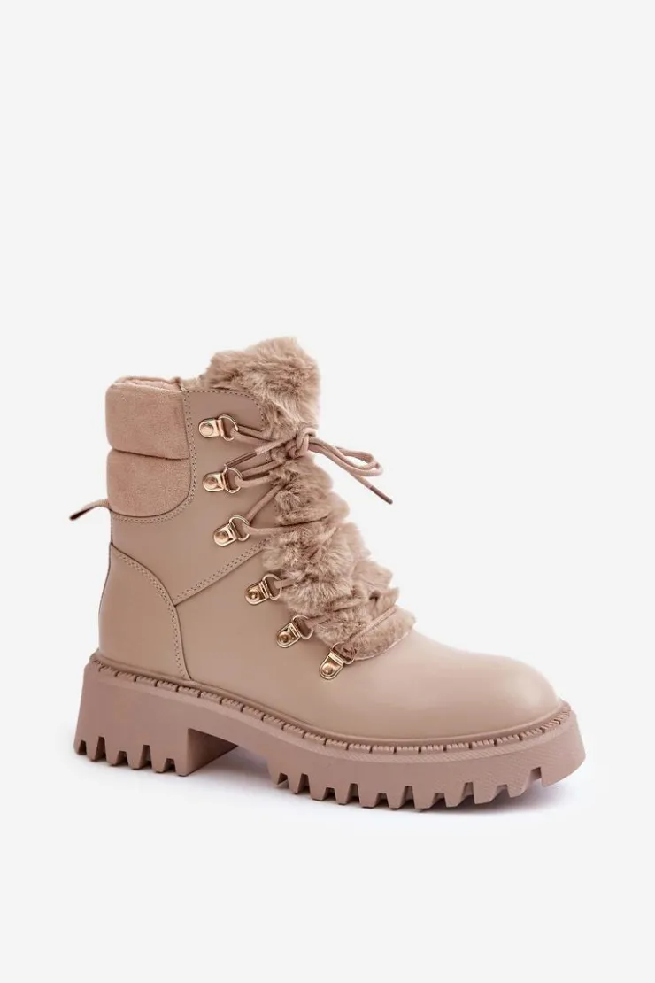 Damskie trapery wykonane z eko skóry to doskonały wybór na chłodniejsze dni. Model sznurowany oraz zapinany na zamek, co ułatwia szybkie zakładanie i zapewnia idealne dopasowanie. Język buta ozdobiony jest miękkim futerkiem, które dodaje uroku oraz chroni przed zimnem. Wnętrze ocieplane gwarantuje ciepło i wygodę podczas noszenia, dzięki czemu trapery świetnie sprawdzą się zarówno na co dzień, jak i w bardziej wymagających warunkach pogodowych. Przy wyborze rozmiaru prosimy sugerować się tabelą rozmiarów.