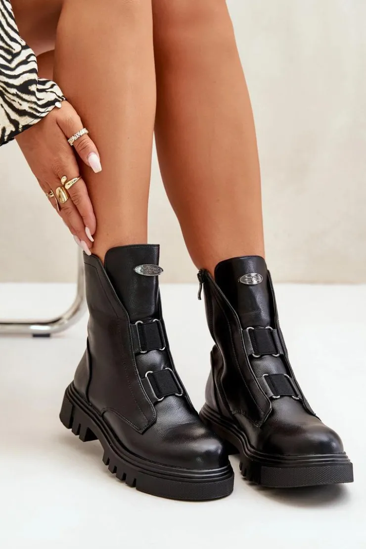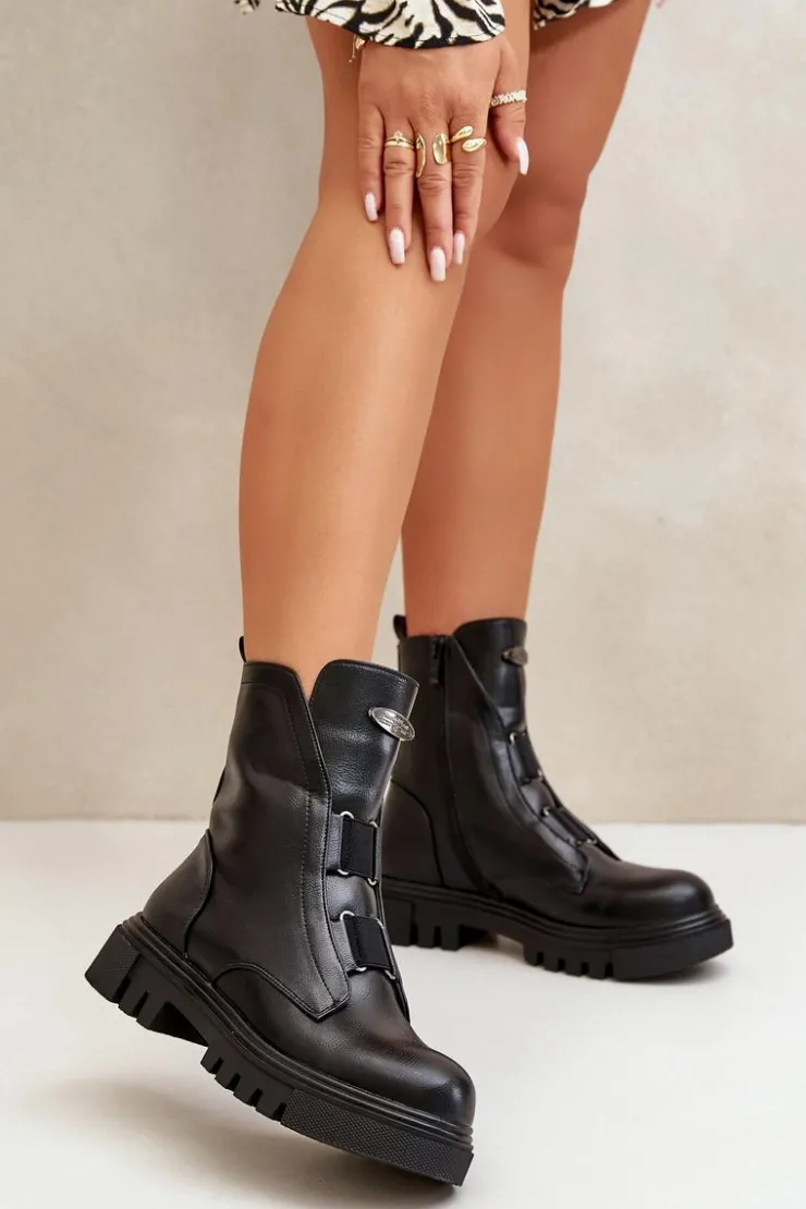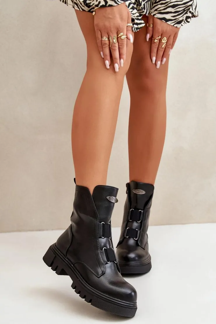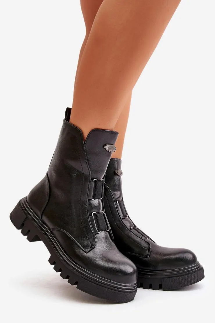 Damskie botki od marki Jezzi zostały wykonane z eko skóry. Zapinane na zamek, co ułatwia zakładanie i ściąganie obuwia. Wnętrze ocieplone kocem obuwniczym, który zapewni ciepło w mroźne dni. Noski zaokrąglone. Modny fason, który doskonale uzupełni wiele jesienno-zimowych stylizacji! Przy wyborze rozmiaru prosimy sugerować się tabelą rozmiarów.