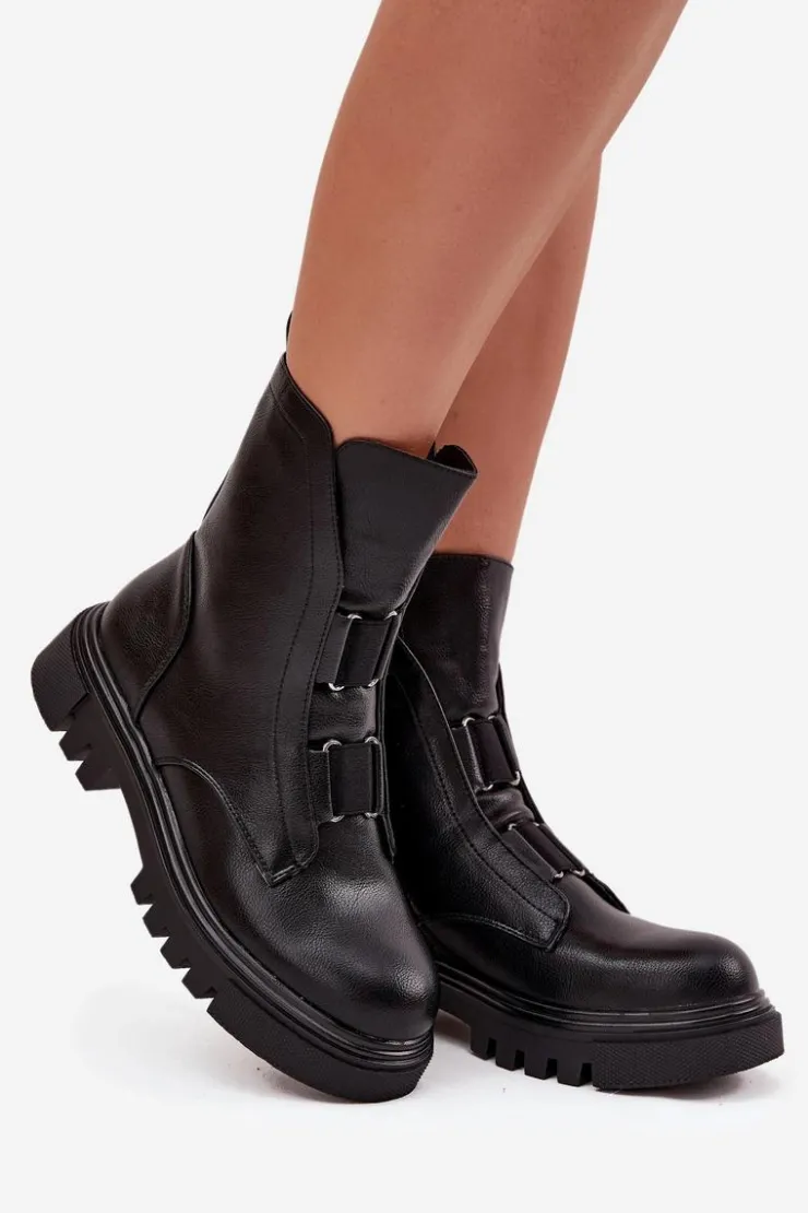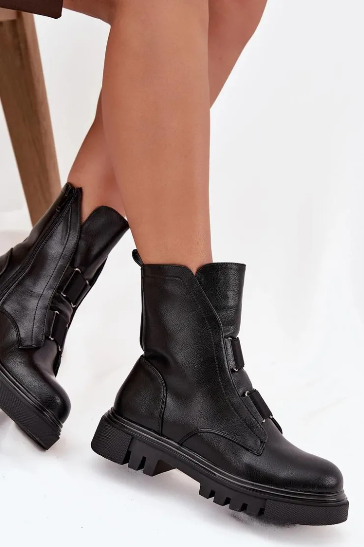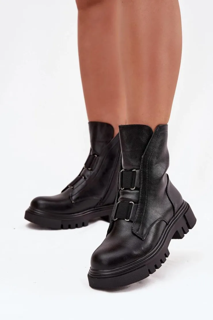 Damskie botki od marki Jezzi zostały wykonane z eko skóry. Zapinane na zamek, co ułatwia zakładanie i ściąganie obuwia. Wnętrze ocieplone kocem obuwniczym, który zapewni ciepło w mroźne dni. Noski zaokrąglone. Modny fason, który doskonale uzupełni wiele jesienno-zimowych stylizacji! Przy wyborze rozmiaru prosimy sugerować się tabelą rozmiarów.