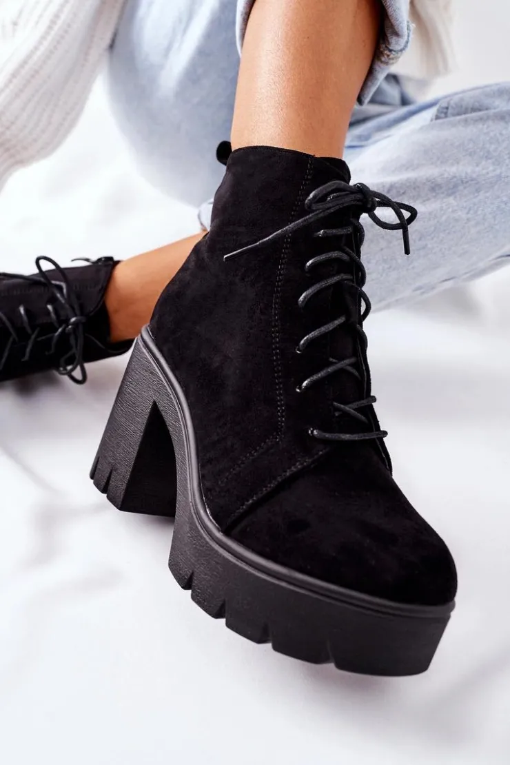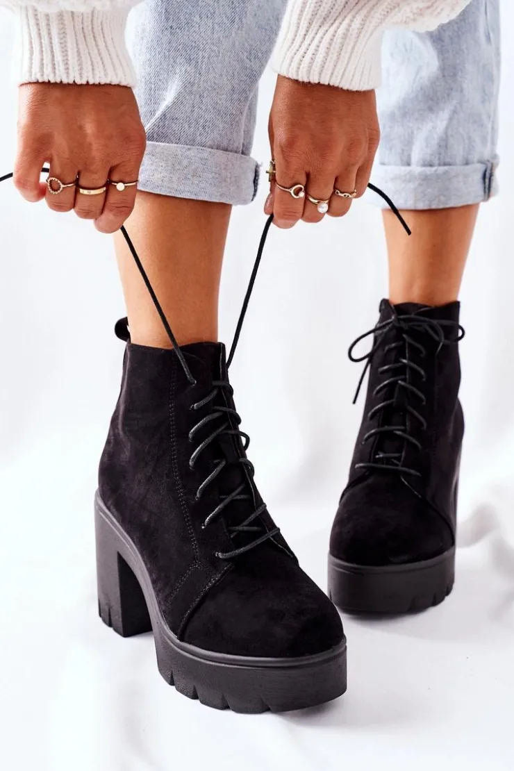 Botki damskie wykonane z eko zamszu. Wnętrze botków ocieplone jest miłym w dotyku kocem obuwniczym. Przy wyborze rozmiaru prosimy sugerować się tabelą rozmiarów.