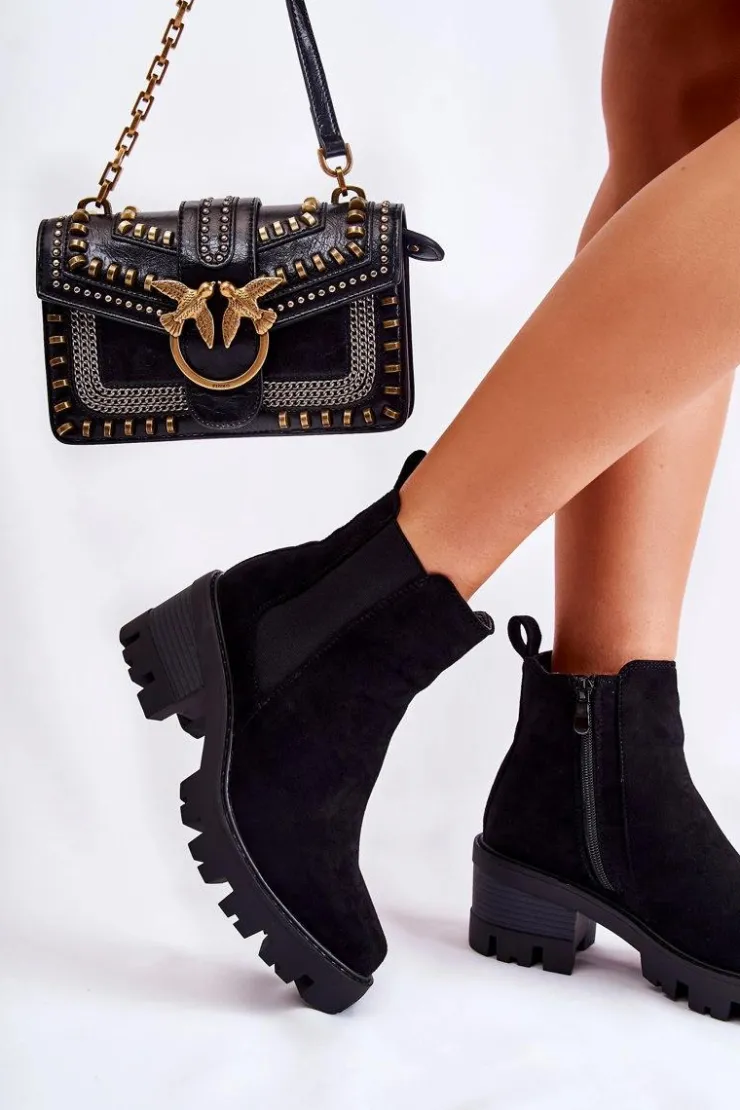 Damskie Boto Ocieplane Damskie Botki Na Suwak Czarne Lenaris