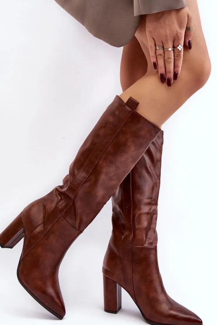 Eleganckie kozaki damskie z eko skóry to wyjątkowy model, który z pewnością podkreśli styl każdej kobiety. Wykonane z eko skóry. Osadzone na obcasie w postaci słupka. Noski w szpic optycznie wysmuklą nogi. Model wsuwany, cholewka przed kolano. Środek ocieplony kocem obuwniczym. Koniecznie musisz je mieć! Przy wyborze rozmiaru prosimy sugerować się tabelą rozmiarów.