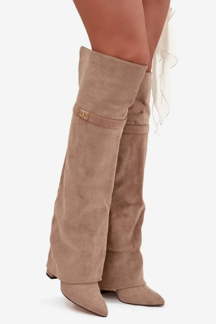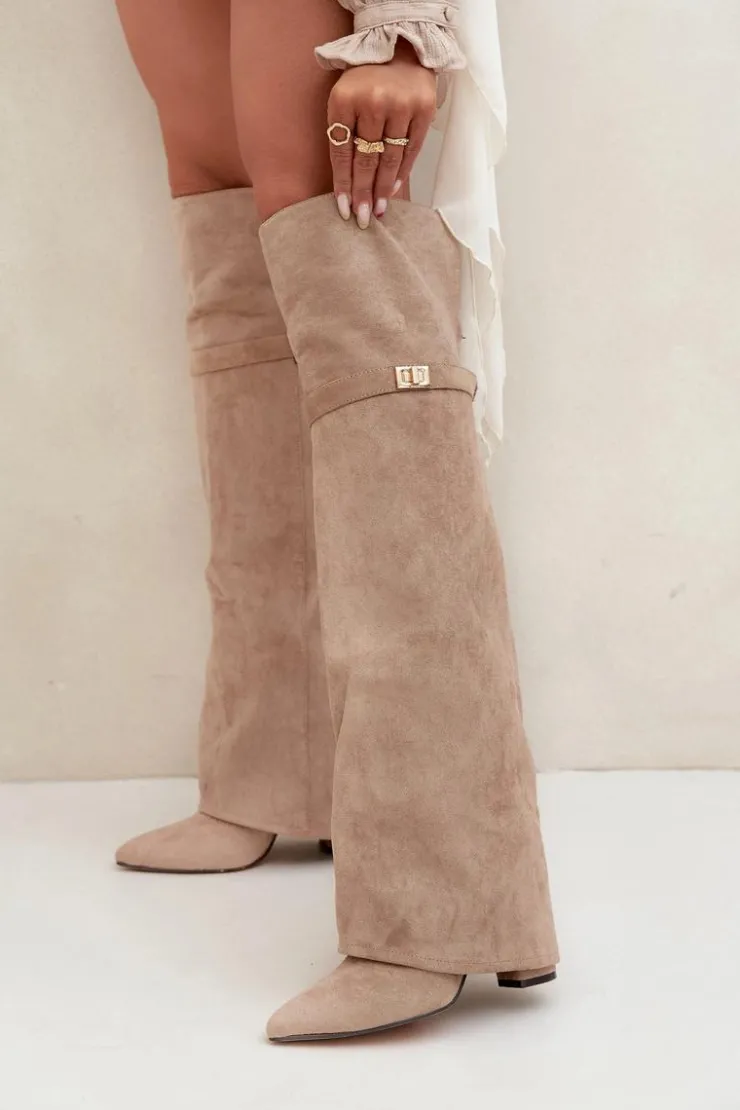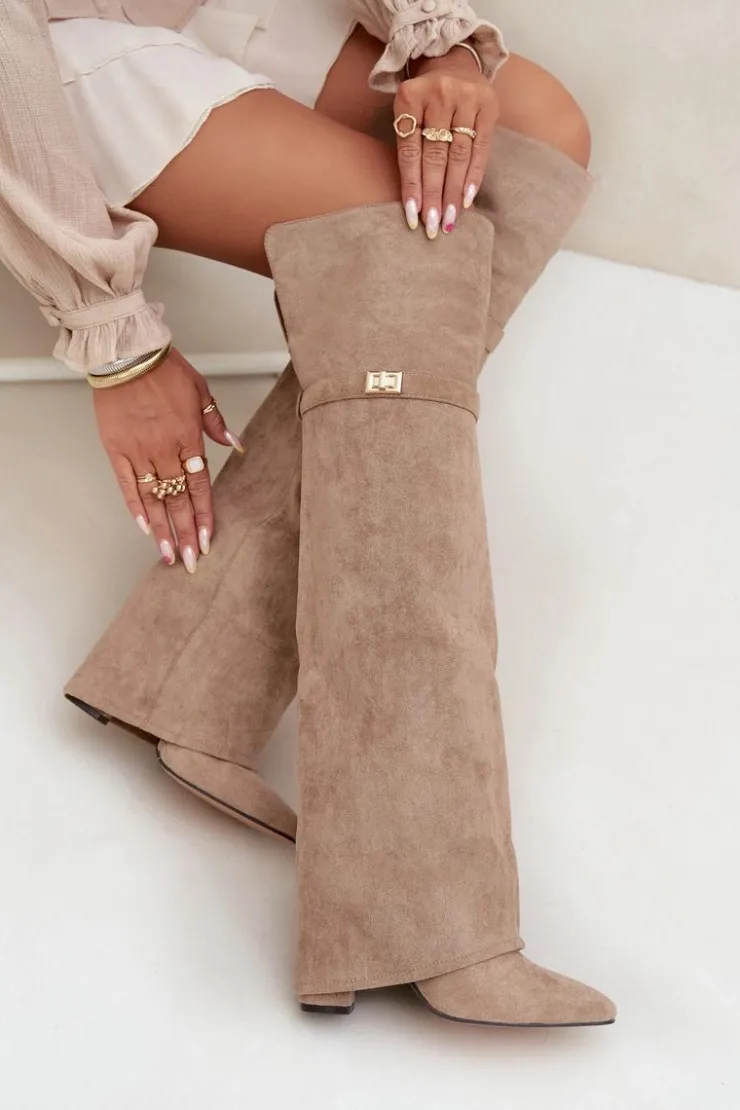 Kozaki damskie z wywiniętą cholewką to prawdziwy hit nadchodzącego sezonu jesienno-zimowego! Cholewka sięga za kolano i nachodzi na obcas dodaje im niepowtarzalnego charakteru. Osadzone na stabilnym obcasie typu słupek, zapewniają komfort i elegancję, a ocieplenie gwarantuje ciepło w chłodniejsze dni. Wsuwane i z noskami w szpic, łączą w sobie wygodę z modnym, kobiecym stylem – idealne do tworzenia efektownych, zimowych stylizacji. Przy wyborze rozmiaru prosimy sugerować się tabelą rozmiarów.