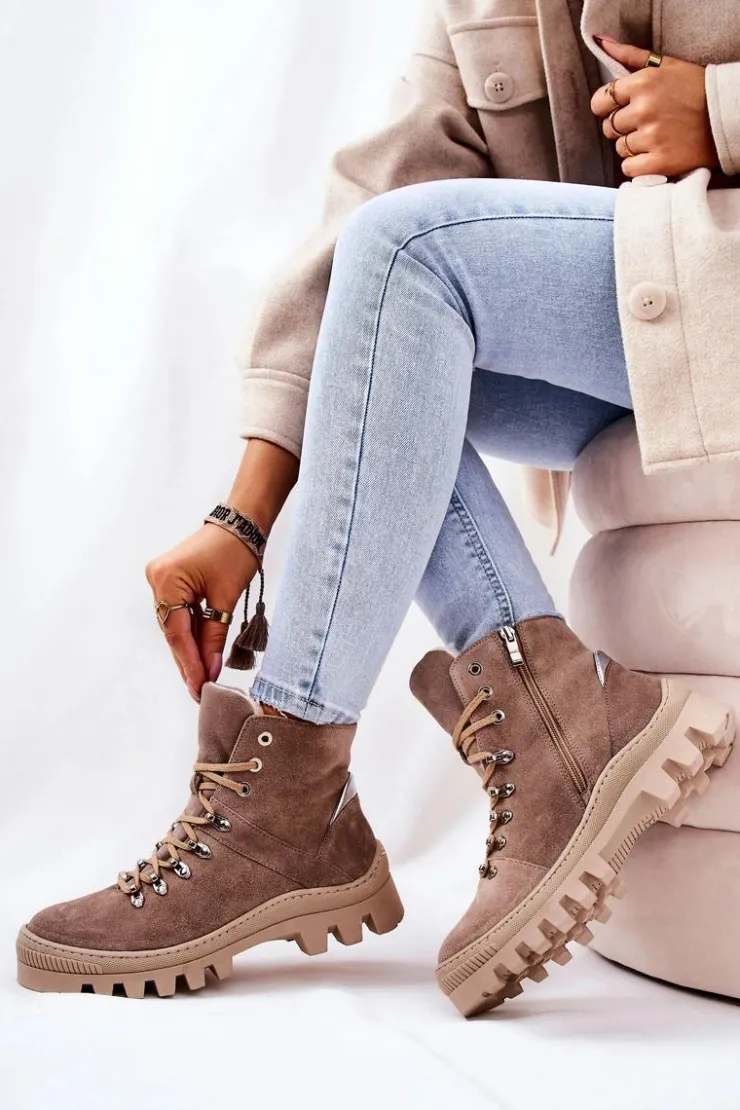Trapero-botki zostały wykonane z naturalnej skóry. Posiadają traperową, grubą podeszwę, która będzie idealnie izolować od zimnego podłoża. Wiązanie sprawia, że można dopasować je do tęgości nogi. Buty w środku posiadają ocieplenie w postaci koca obuwniczego oraz sztywny zapiętek. Sprawdź pozostałą naszą ofertę ocieplanych botków! Przy wyborze rozmiaru prosimy sugerować się tabelą rozmiarów.