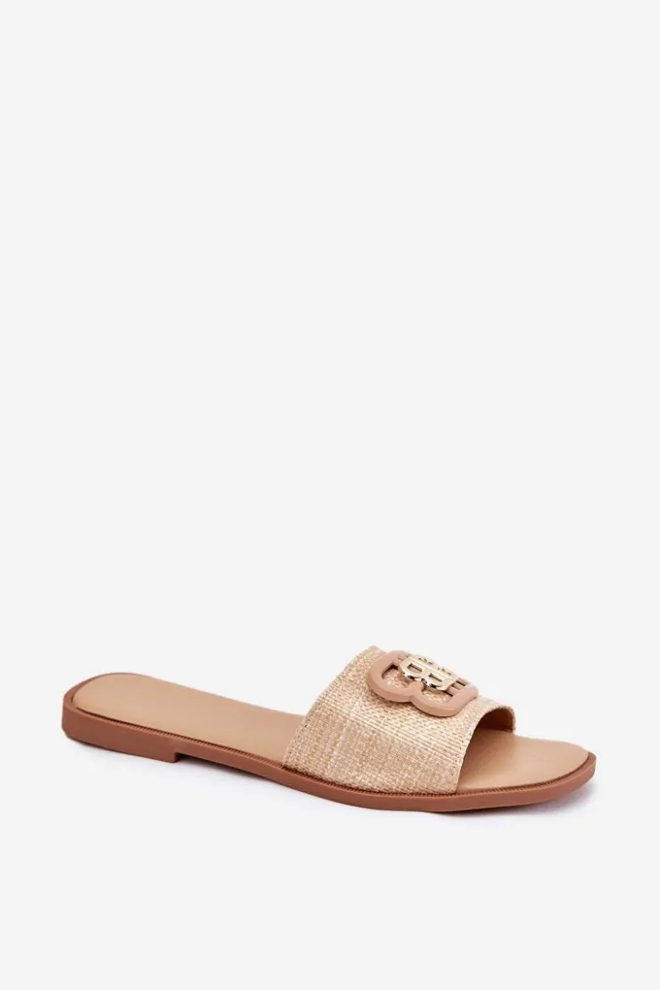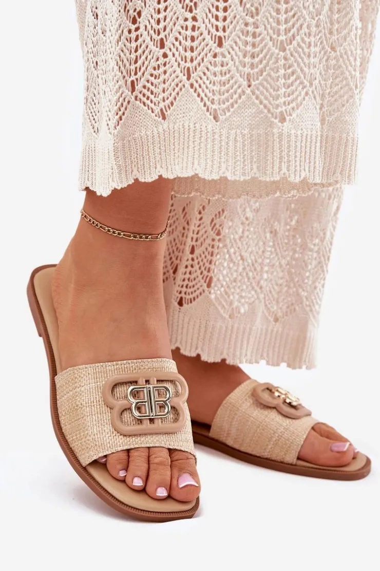 Klapki damskie na płaskim obcasie to wygodna i stylowa opcja na ciepłe dni. Na pasku znajduje się subtelny ozdobny detal, który nadaje im eleganckiego charakteru. Miękka eko skórzana wkładka zapewnia komfort przez cały dzień. Doskonałe do sukienek oraz spodni materiałowych, te klapki łączą funkcjonalność z modnym wyglądem, idealne na codzienne wyjścia. Przy wyborze rozmiaru prosimy sugerować się tabelą rozmiarów.