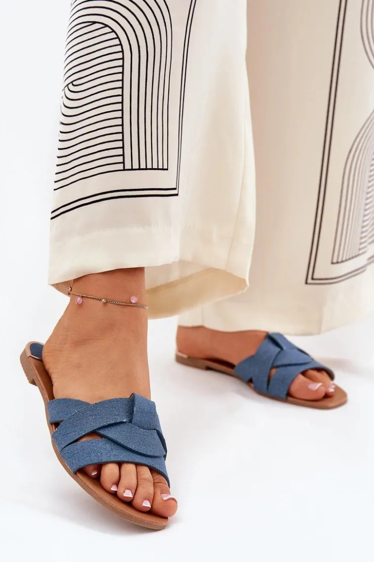 Płaskie klapki damskie z materiału tekstylnego, które charakteryzują się przeplatającymi się paskami z przodu, nadającymi im delikatnego uroku. Klasyczny fason sprawia, że będą doskonałym wyborem do wielu stylizacji, łącząc wygodę z prostym, eleganckim wyglądem. Przy wyborze rozmiaru prosimy sugerować się tabelą rozmiarów.