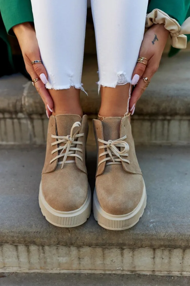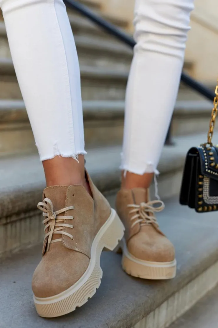 Piękne półbuty marki Nicole. Wykonane są ze skóry naturalnej. Klasyczna forma pasuje do wielu stylizacji. Buty dobrze dopasowują się do kształtu stopy, posiadają miękką wkładkę ze skóry naturalnej, zamszowej. Klasyczny, wiązany model. Posiadają usztywniany zapiętek. Masywna podeszwa świetnie będzie izolować od zimna. Przy wyborze rozmiaru prosimy sugerować się tabelą rozmiarów.