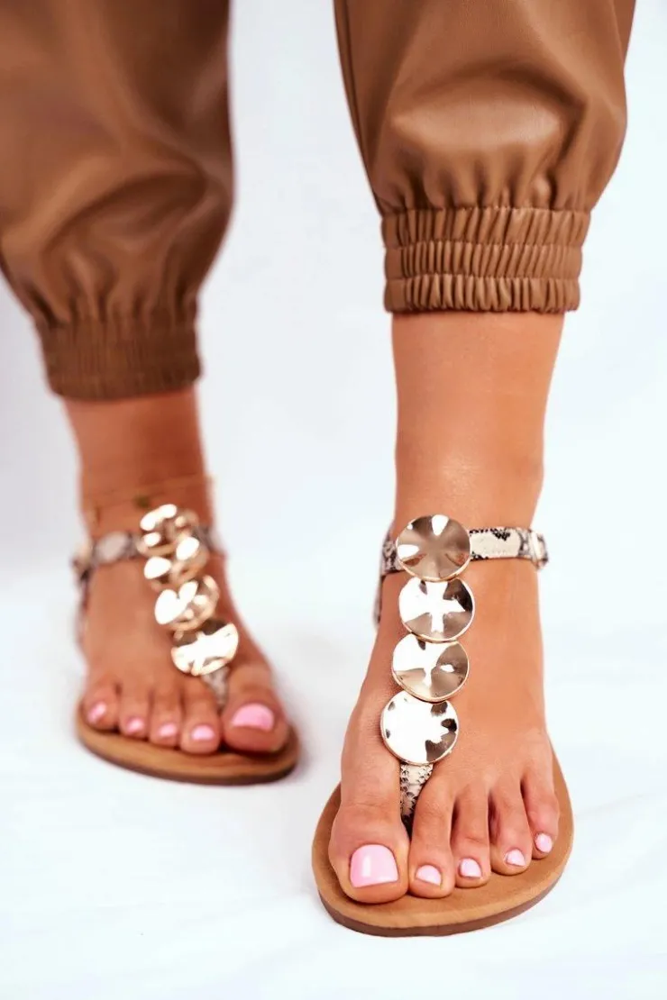 Damskie Boto Sandałki Damskie Eleganckie Złote Blaszki Snake Casandra