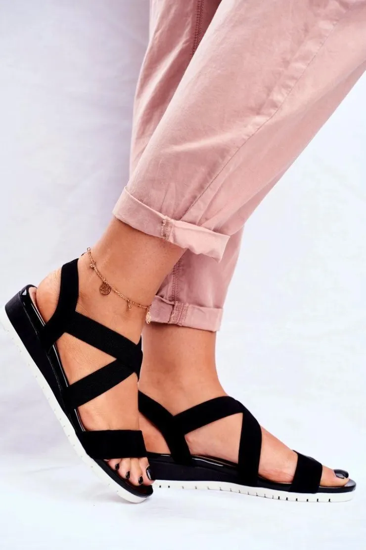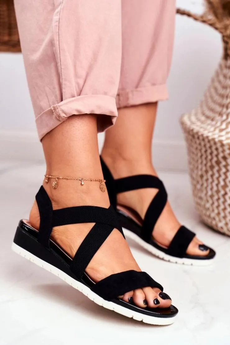 Damskie Boto Sandałki Damskie Na Koturnie Czarne Wsuwane Harper