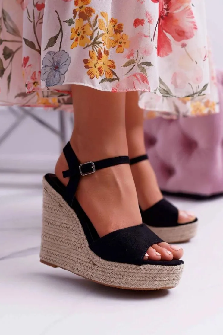 Damskie Boto Sandały Damskie Na Koturnie Lniane Czarne Girenn