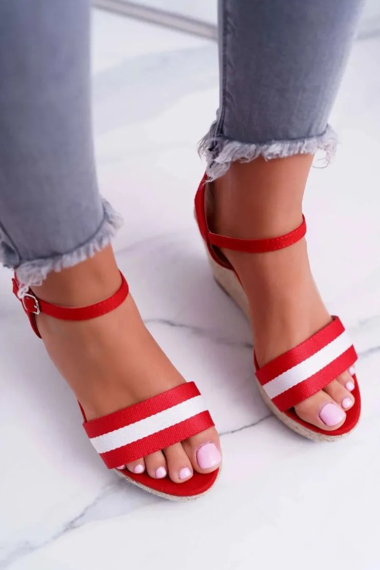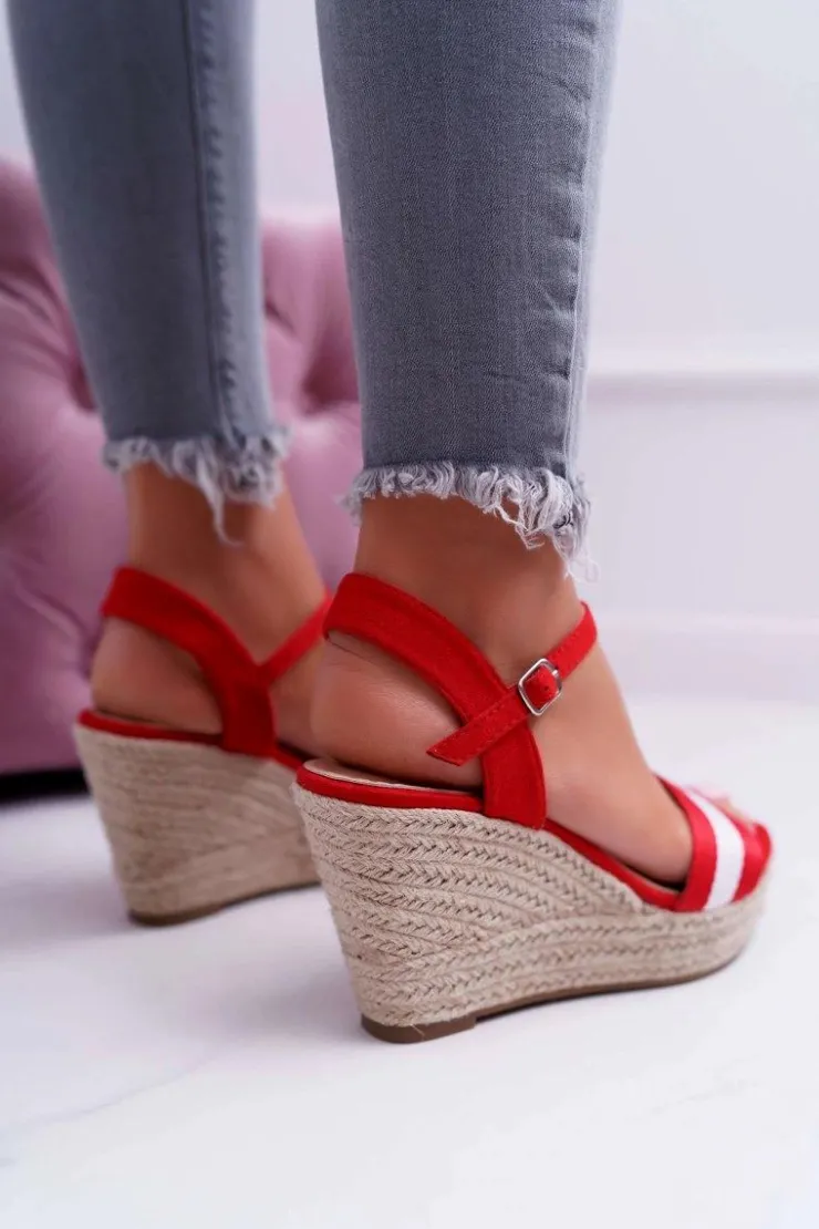 Damskie Boto Sandały Damskie Na Koturnie Lniane Czerwone Renew