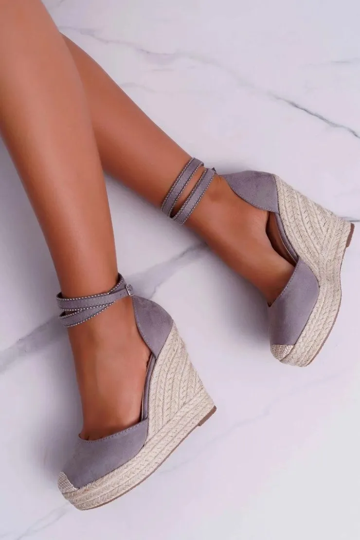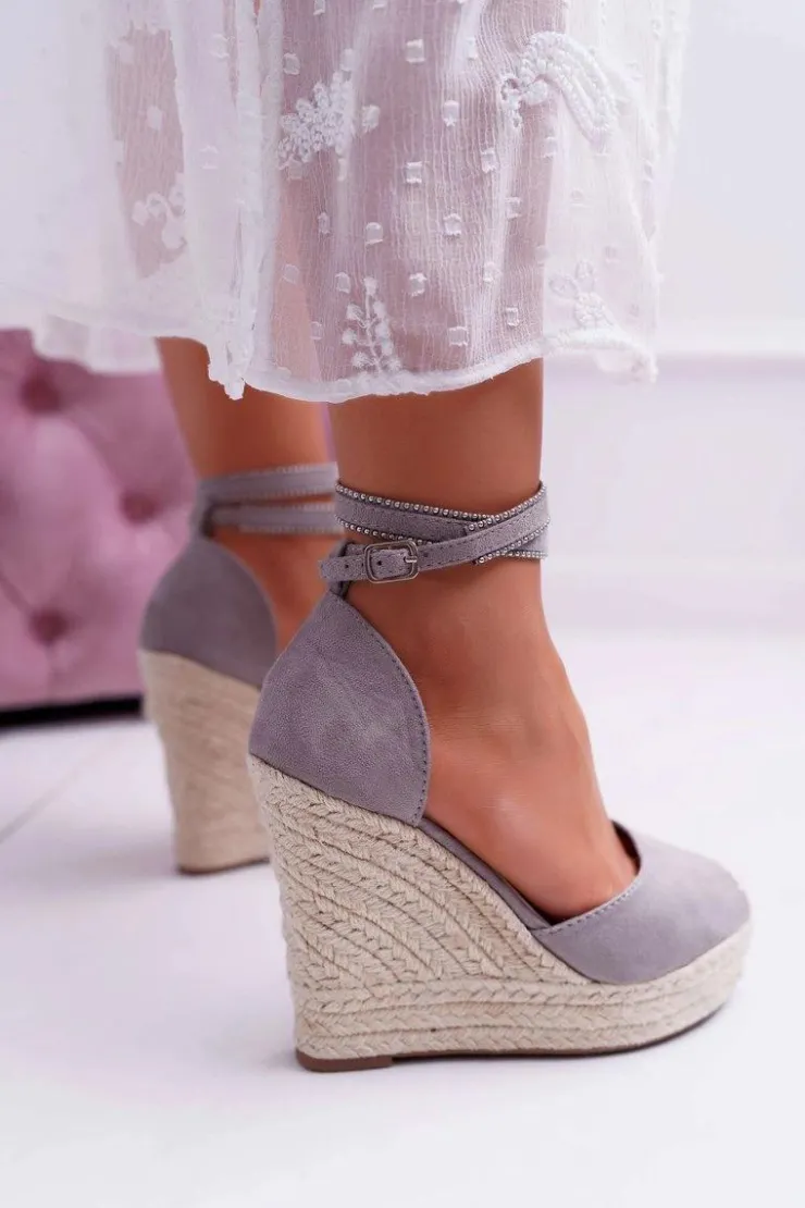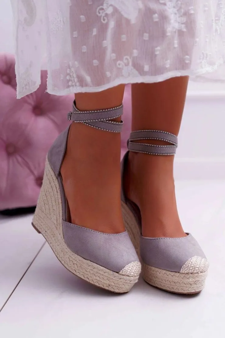 Damskie Boto Sandały Damskie Na Koturnie Lniane Szare Canterola