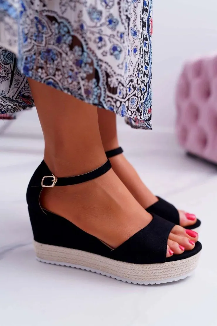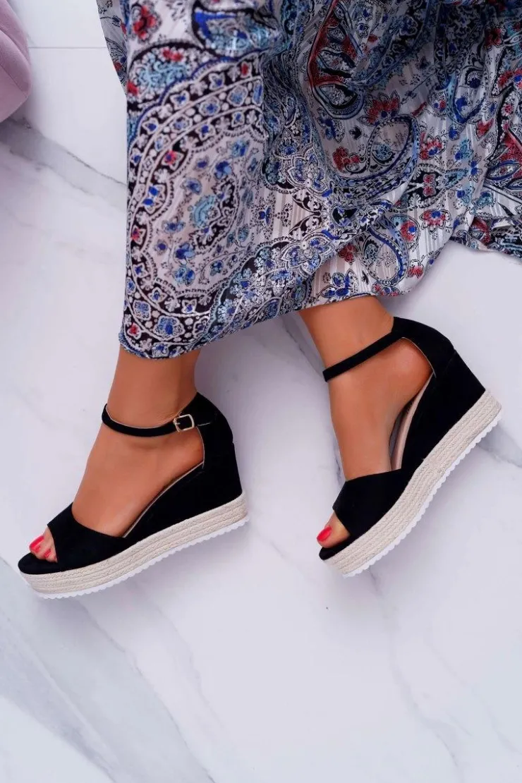 Damskie Boto Sandały Damskie Na Koturnie Platformie Zamszowe Czarne Delima