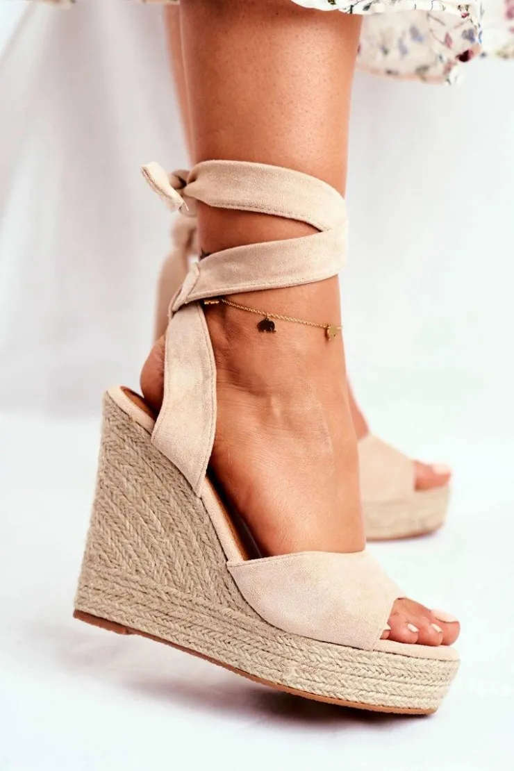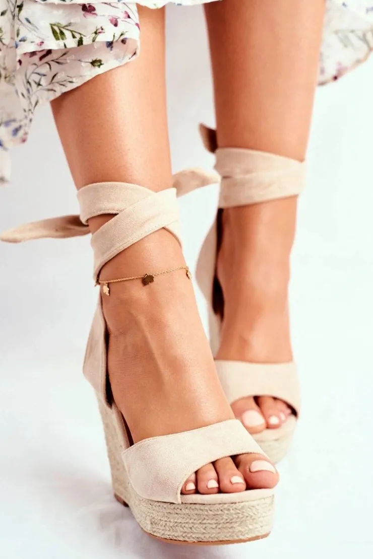Damskie Boto Sandały Damskie Na Koturnie Wiązane Beżowe Belleza