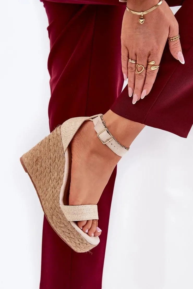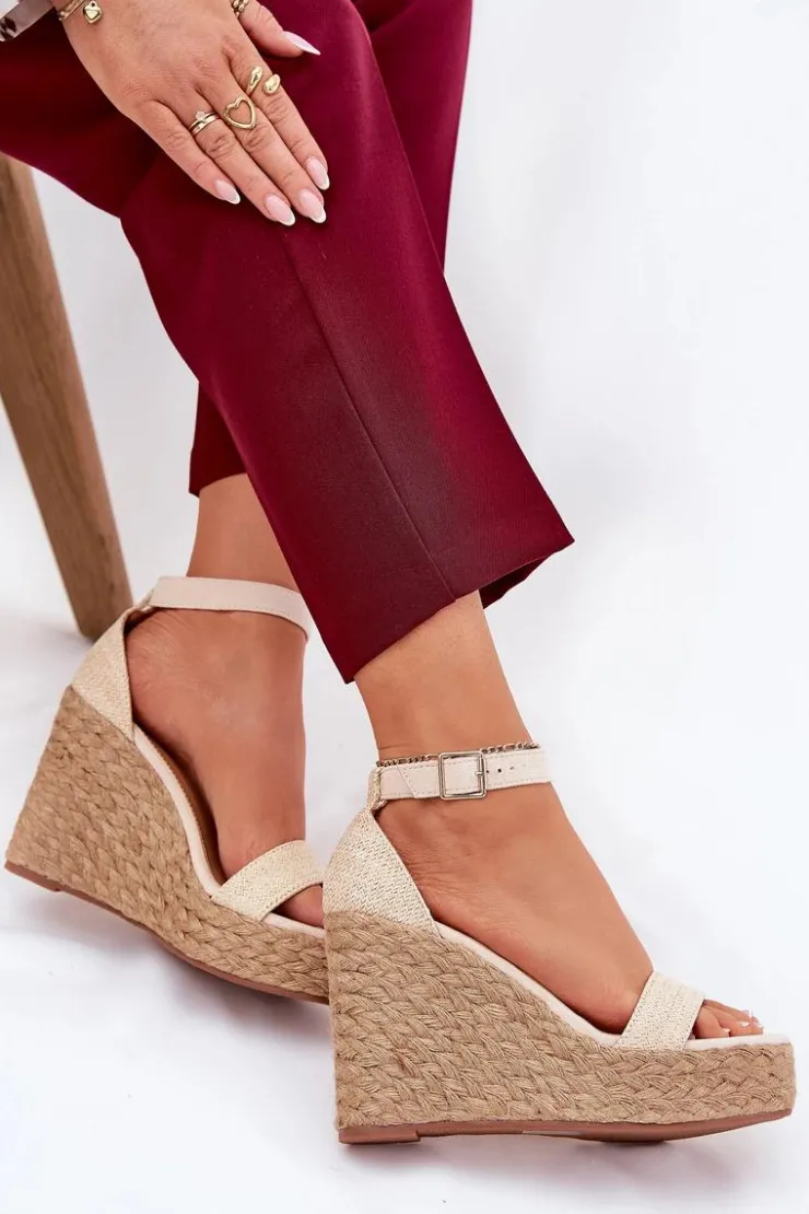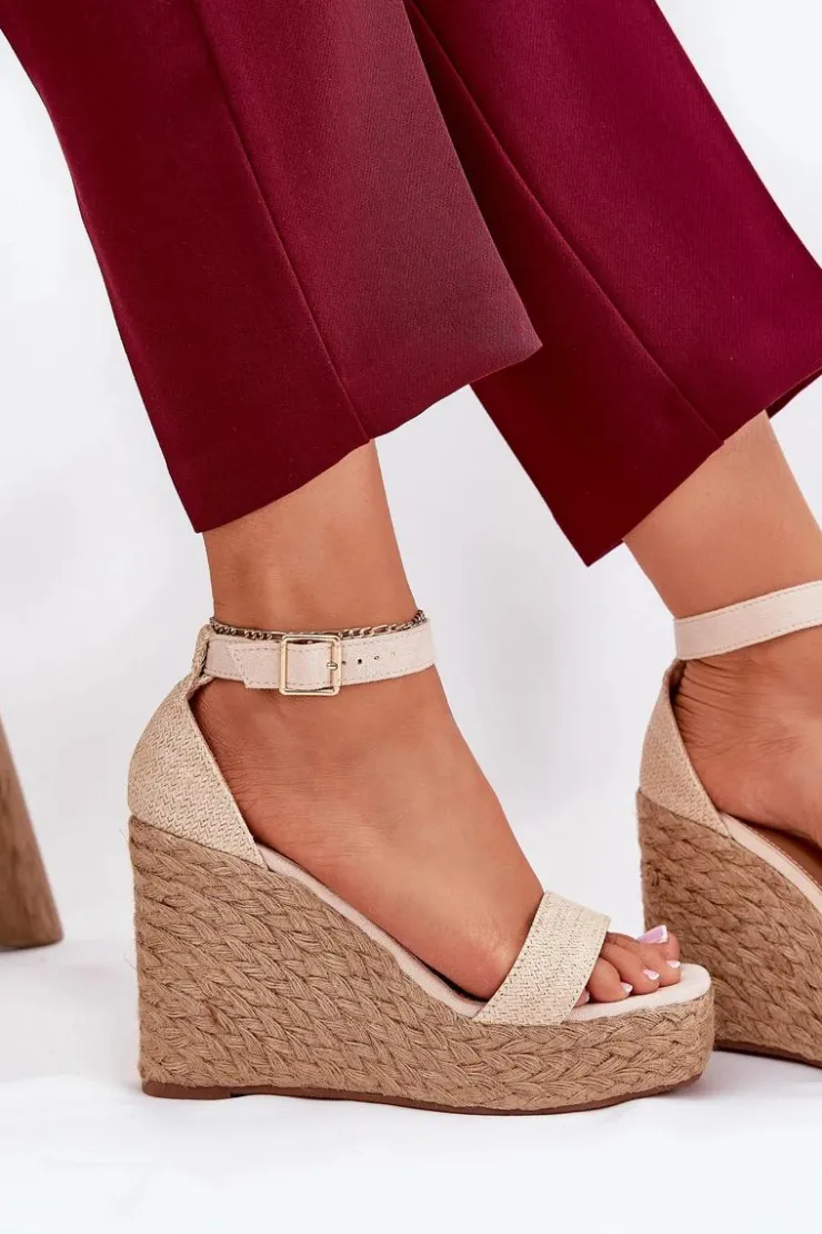 Sandały damskie z plecionką, które łączą styl z komfortem. Osadzone na koturnie. Zapinane na regulowany pasek ze sprzączką, co pozwala na idealne dopasowanie do stopy. Zakryte pięty dodają klasycznego wyglądu, a miękka wkładka gwarantuje komfort podczas chodzenia. Doskonałe na ciepłe dni, idealnie komponują się z sukienkami, spódnicami i spodniami, wprowadzając odrobinę elegancji i lekkości do każdej stylizacji. Przy wyborze rozmiaru prosimy sugerować się tabelą rozmiarów.