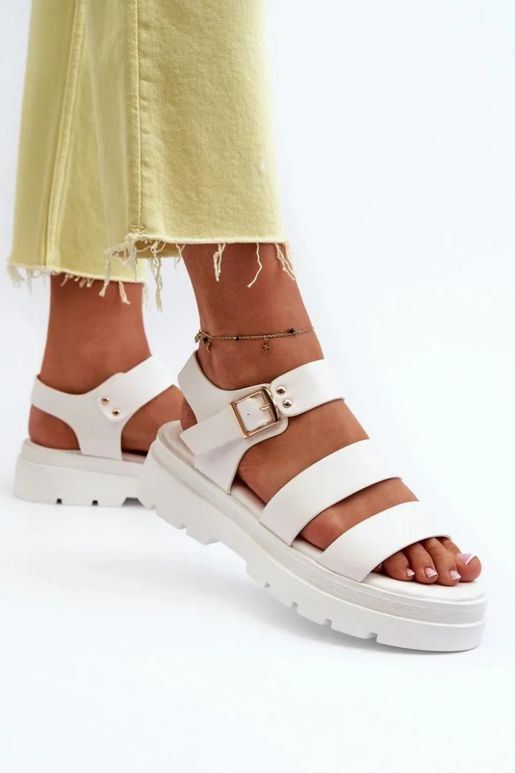 Modne sandały damskie na grubej podeszwie wykonane z eko skóry to idealny wybór na letnie dni. Zapinane na regulowany pasek ze sprzączką, gwarantują doskonałe dopasowanie do stopy. Dodatkowo ich designerski wygląd sprawia, że doskonale komponują się z różnymi stylizacjami, dodając im nuty nowoczesności i świeżości. Przy wyborze rozmiaru prosimy sugerować się tabelą rozmiarów.