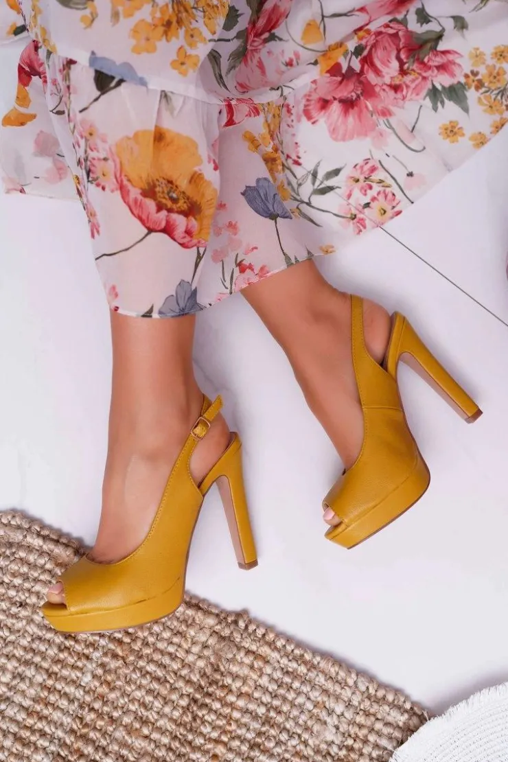 Damskie Boto Sandały Damskie Na Obcasie Platformie Żółte Lorajn