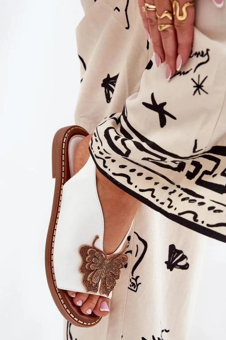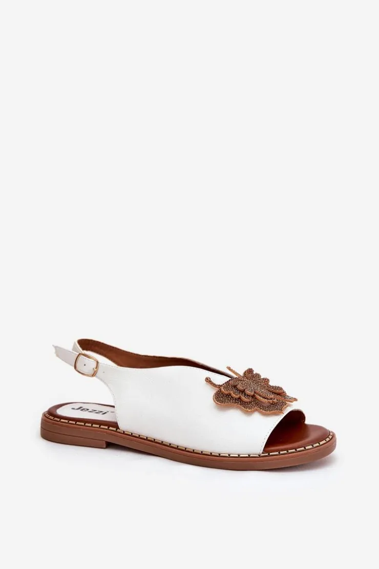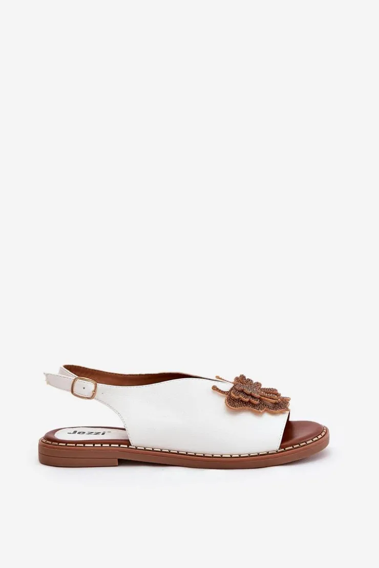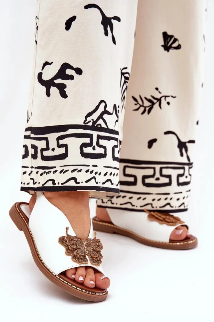 Damskie Boto Sandały Damskie Na Płaskim Obcasie Z Ozdobą Białe Setorina