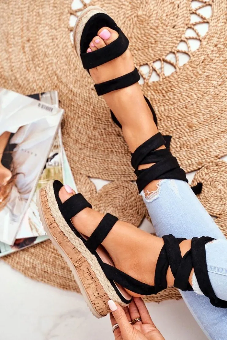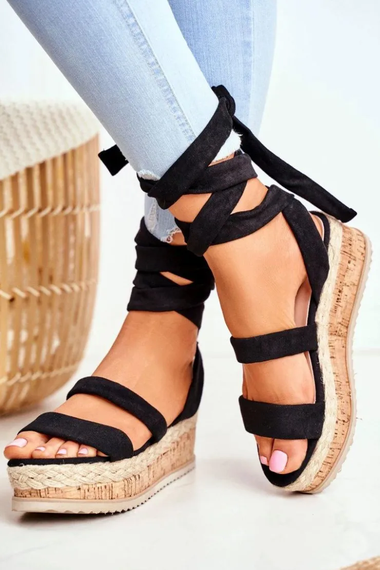 Damskie Boto Sandały Damskie Na Platformie Wiązane Czarne La Favorite