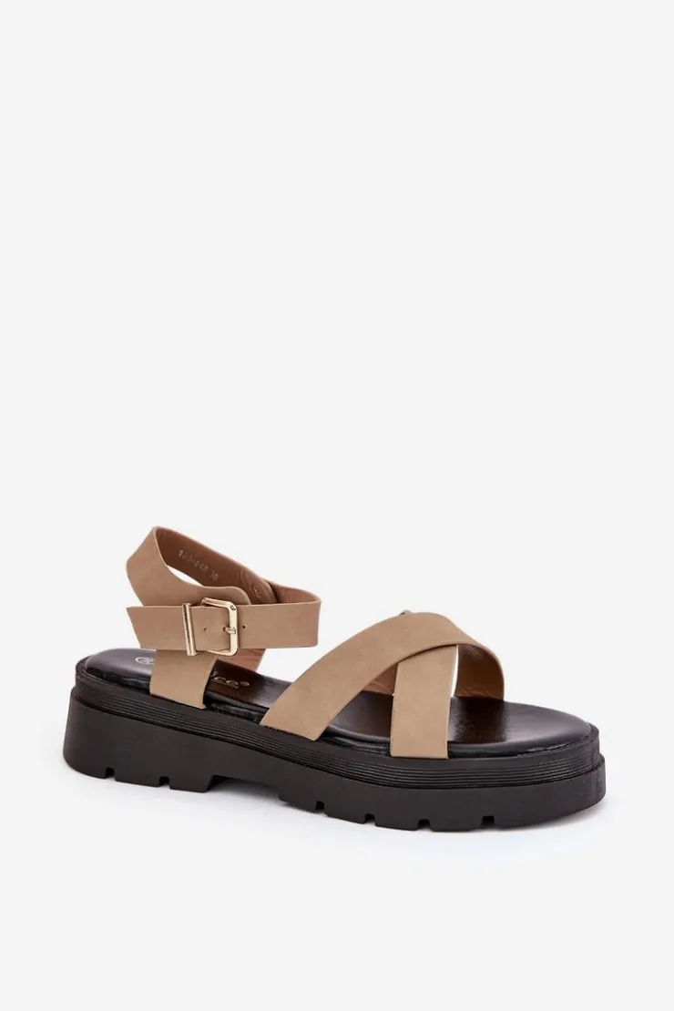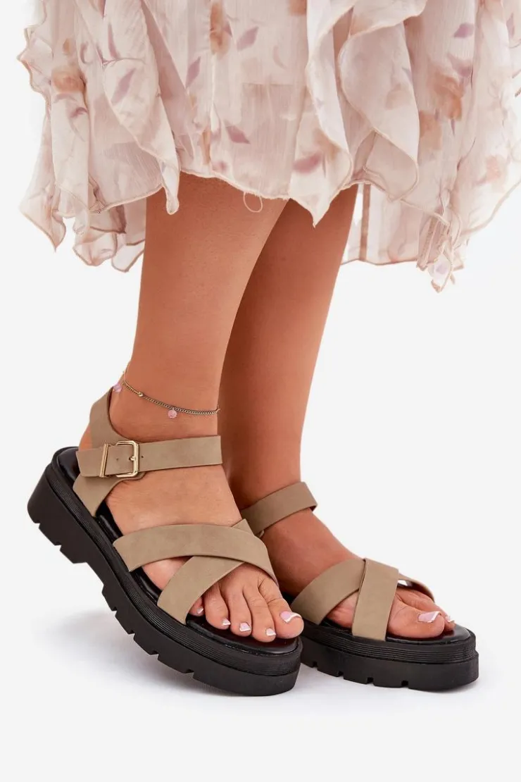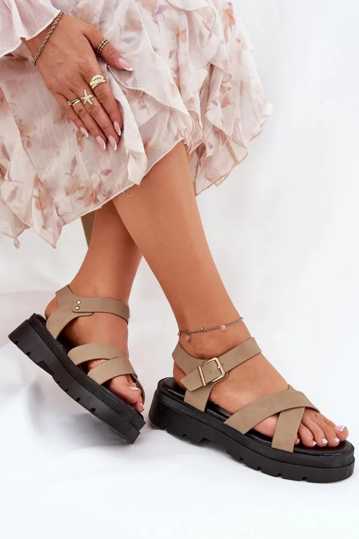 Stylowe sandały damskie wykonane z eko skóry. Osadzone na platformie. Z przodu znajdują się dwa przeplatające się paski, które dodają wyjątkowego charakteru. Zapinane na klamrę wokół kostki, zapewniają idealne dopasowanie. Doskonałe na ciepłe dni, doskonale komponują się z sukienkami, spódnicami i spodniami. Przy wyborze rozmiaru prosimy kierować się tabelą rozmiarów.