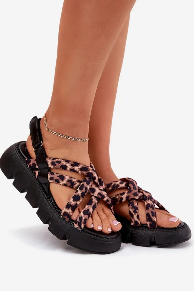 Damskie sandały na platformie to świetna opcja na ciepłe dni, łącząca styl z wygodą. Model ten zapinany na rzep zapewnia łatwość zakładania i idealne dopasowanie do stopy. Z przodu sandały wyróżniają się przeplatającymi się paskami, które dodają im nowoczesnego charakteru. Idealne do codziennych stylizacji! Przy wyborze rozmiaru prosimy sugerować się tabelą rozmiarów.