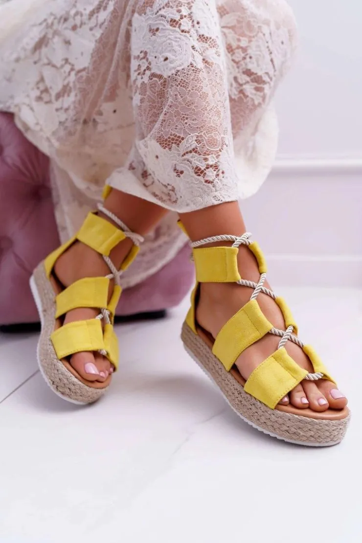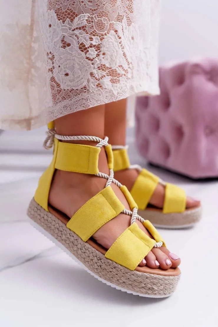 Damskie Boto Sandały Damskie na Platformie Zamszowe Żółte Ergola