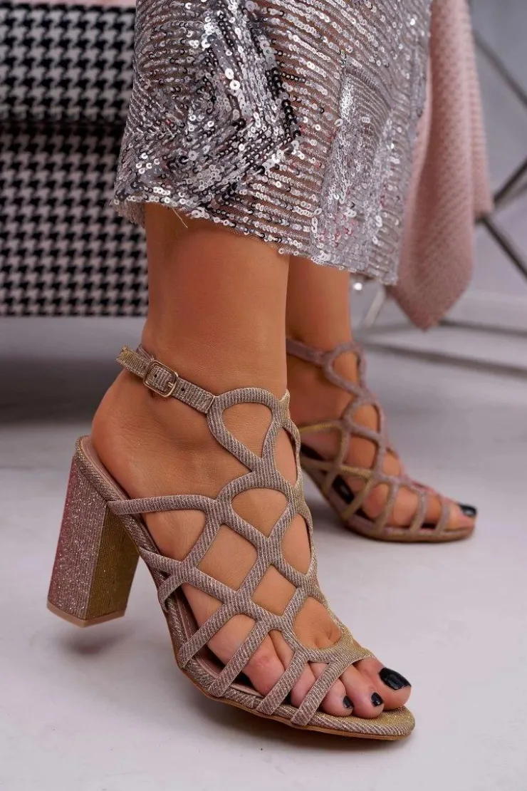 Damskie Boto Sandały Damskie Na Słupku Brokatowe Champagne Gete