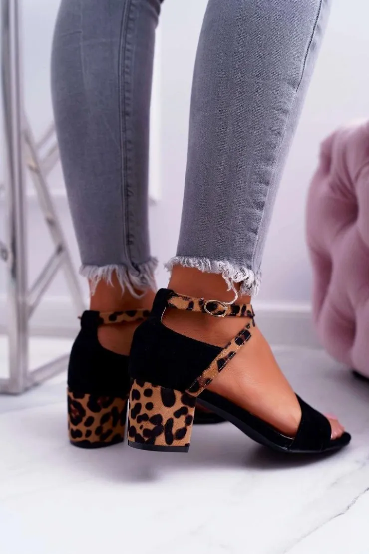 Damskie Boto Sandały Damskie Na Słupku Lu Boo Panterka Czarne Fall In Love
