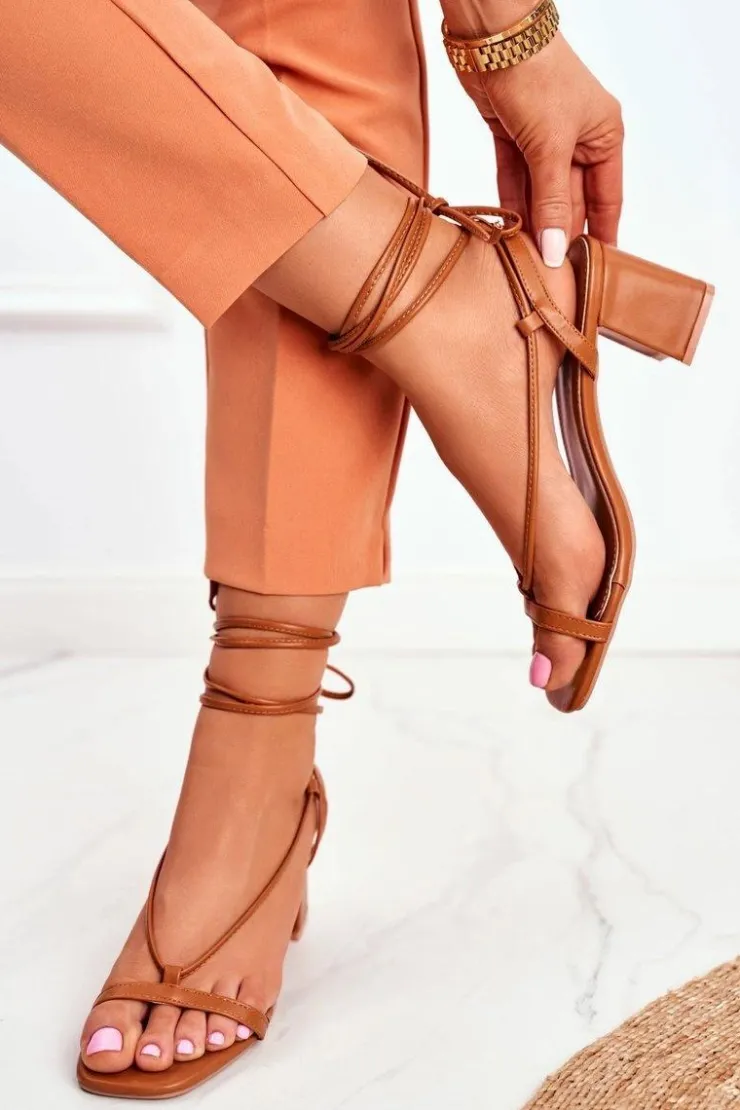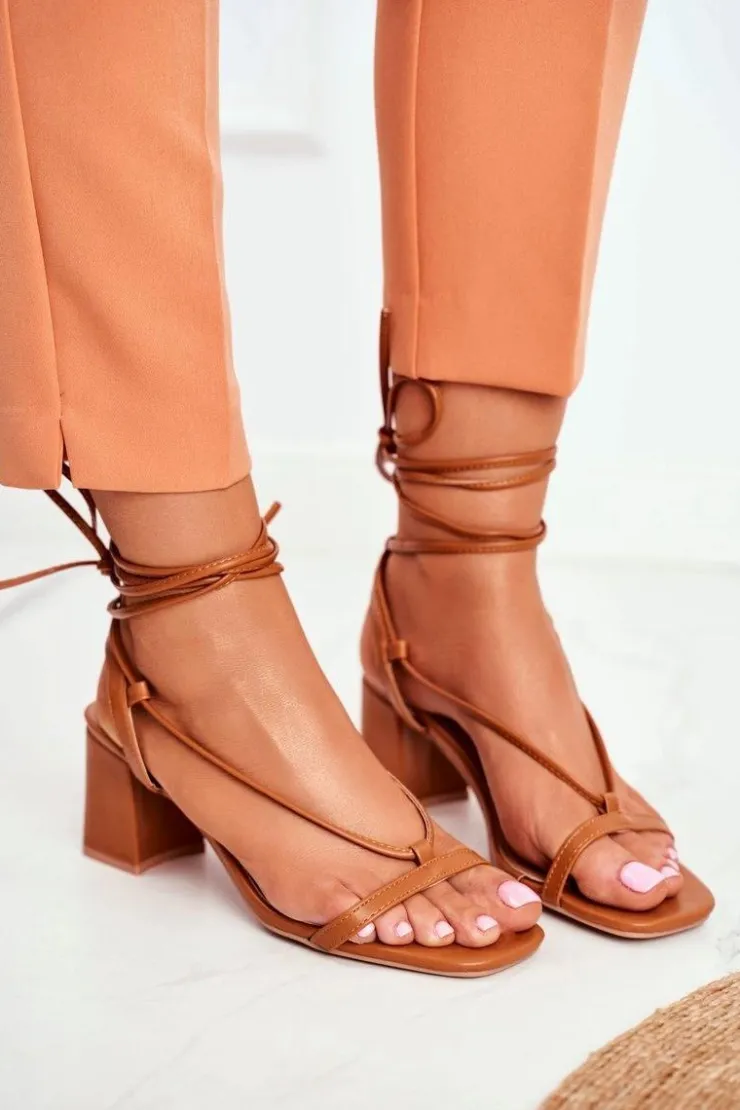 Damskie Boto Sandały Damskie Na Słupku Wiązane Camel Morning