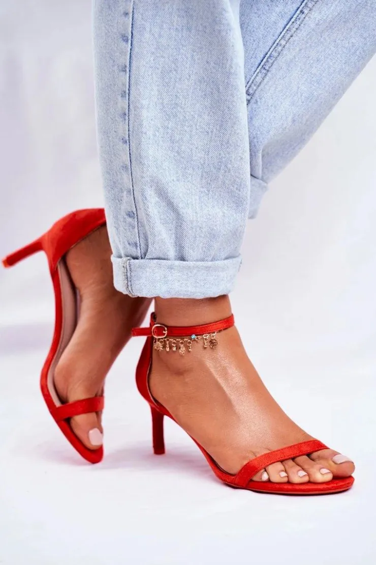 Damskie Boto Sandały Damskie Na Szpilce Klasyczne Czerwone Mintore
