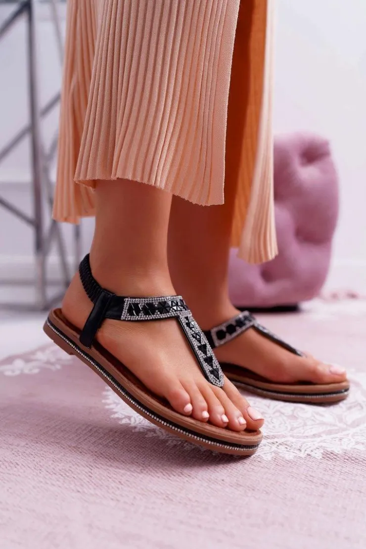 Damskie Boto Sandały Damskie Płaskie Wsuwane Z Cyrkoniami Czarne Mabellena