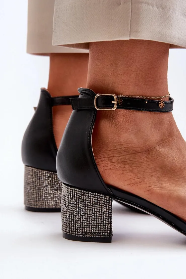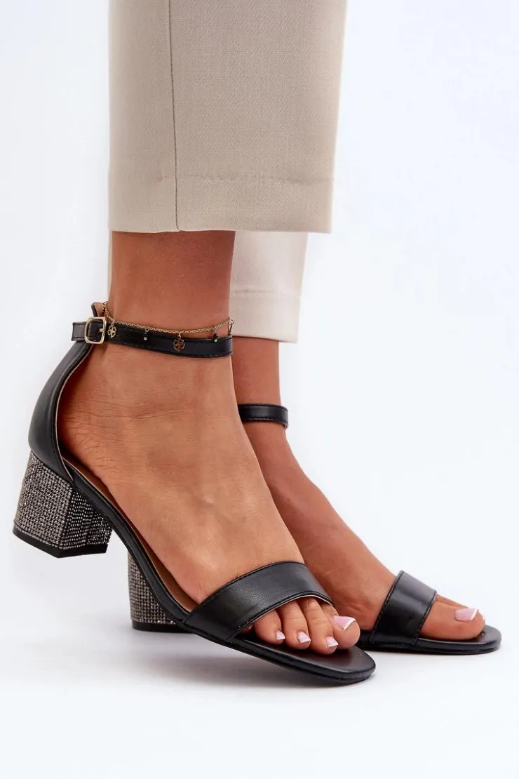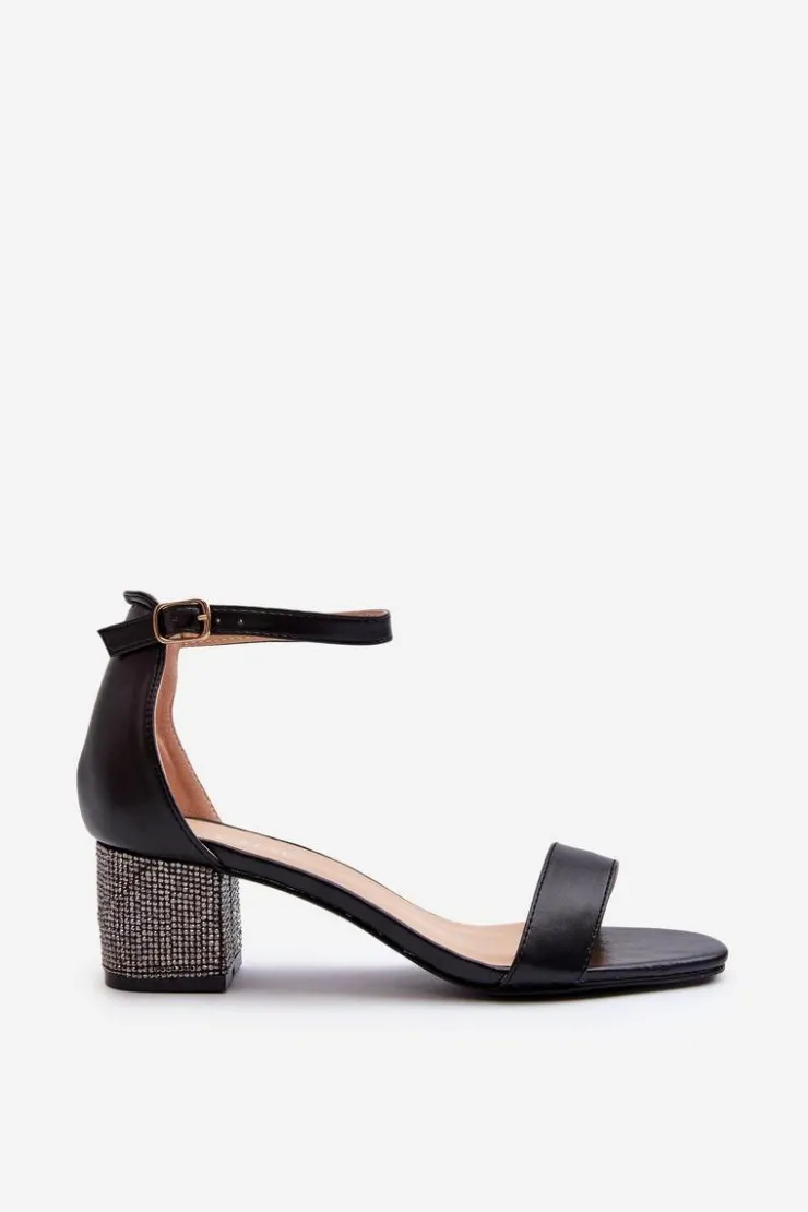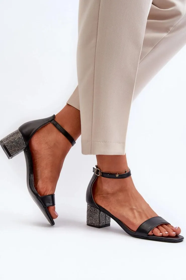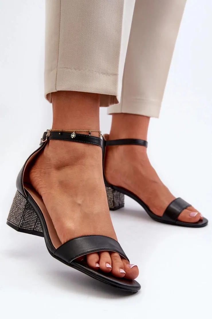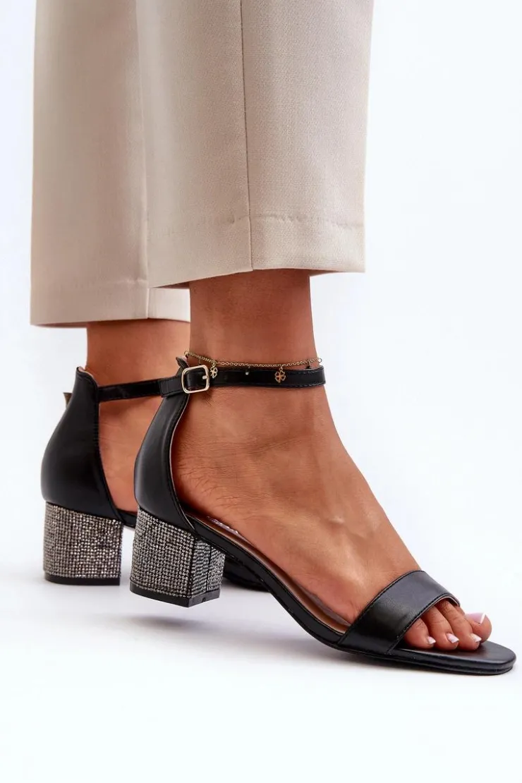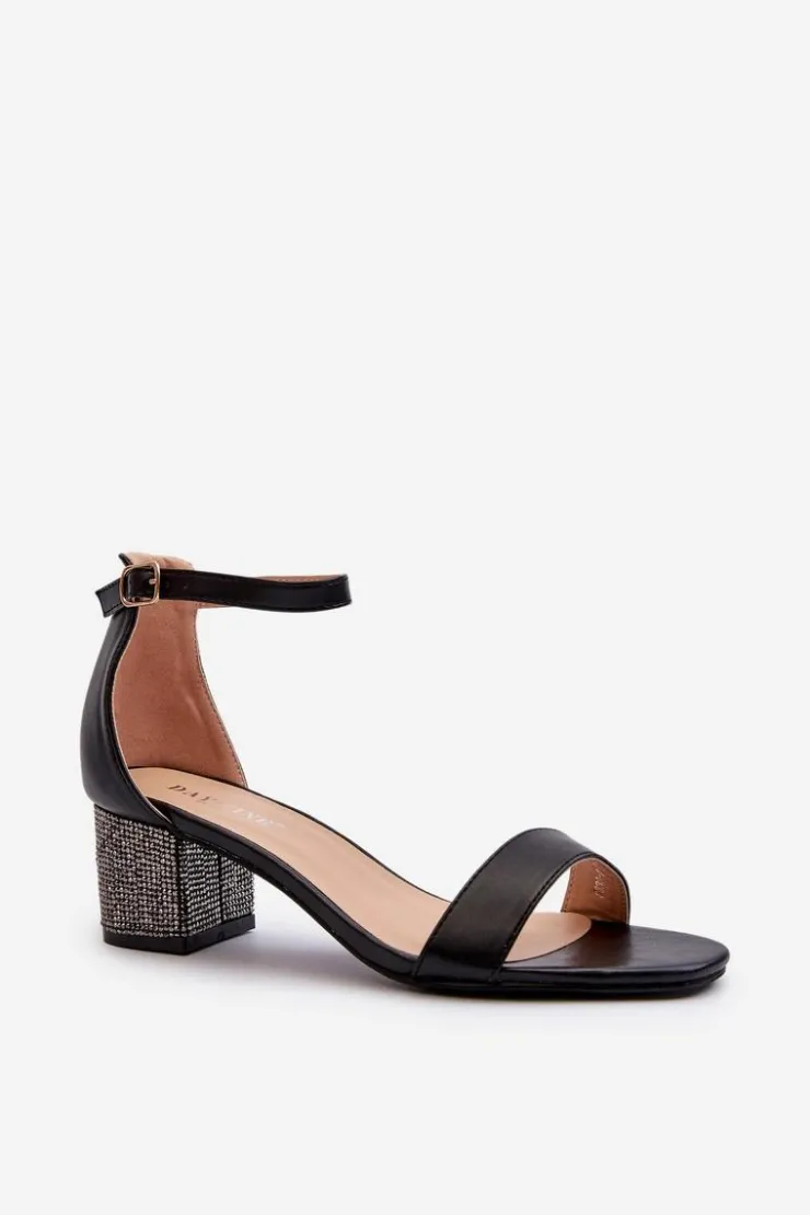 Damskie Boto Sandały Damskie Z Eko Skóry Na Zdobionym Obcasie Czarne Wiatalia