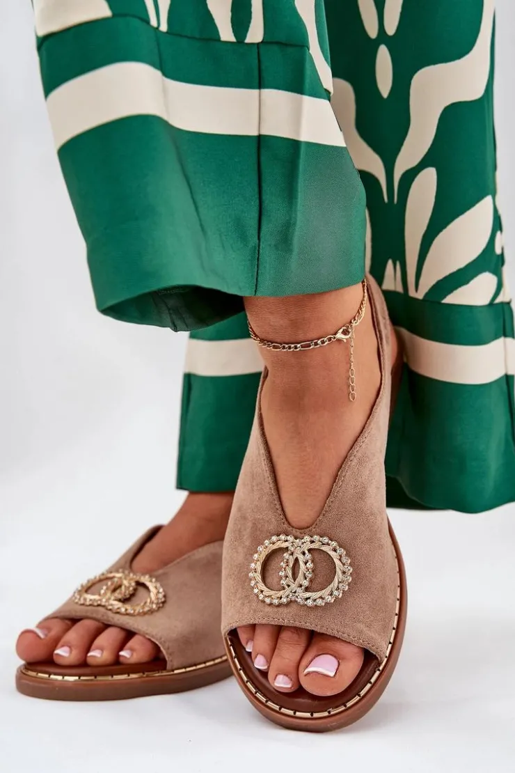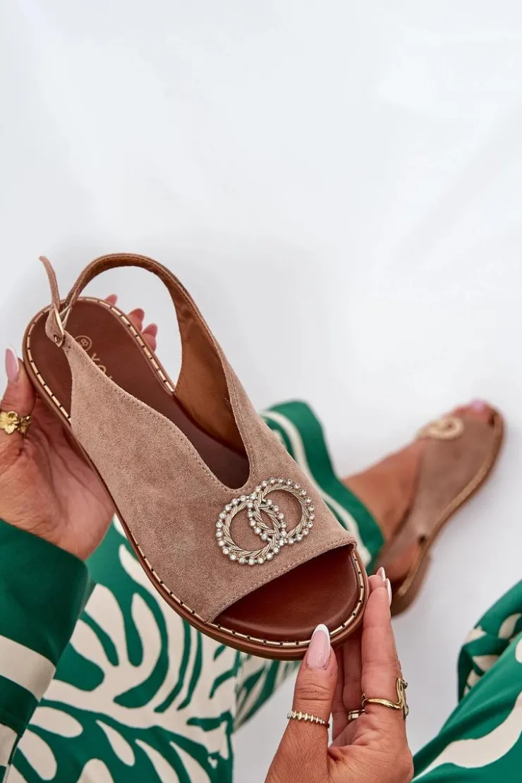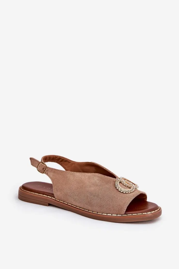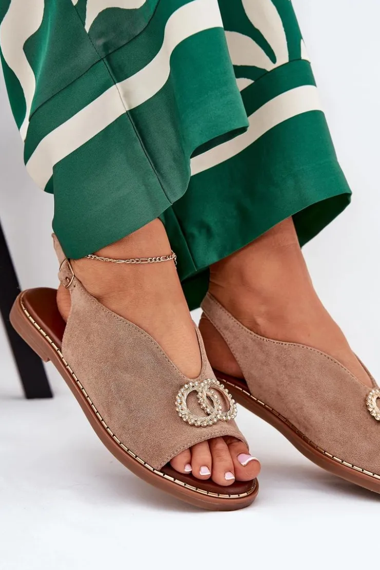 Damskie Boto Sandały Damskie Z Ozdobą Na Płaskim Obcasie Eko Zamszowe Ciemnobeżowe Ralisses