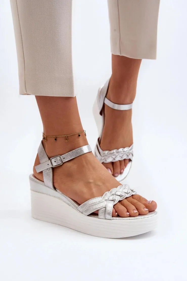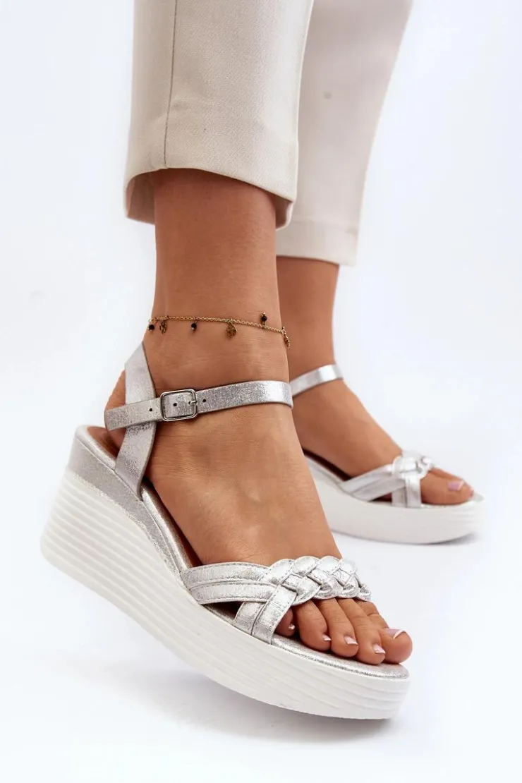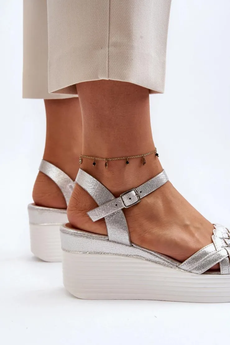 Sandały damskie to idealny wybór do letnich stylizacji. Model ten posiada zapinanie na regulowany pasek ze sprzączką, który zapewni odpowiednie dopasowanie. Obcas obcas w formie koturnu i platforma będą gwarantować stabilność i wygodę. Dodatkowo eko skórzana wkładka zapewni komfort nawet podczas długiego noszenia. Przy wyborze rozmiaru prosimy sugerować się tabelą rozmiarów.