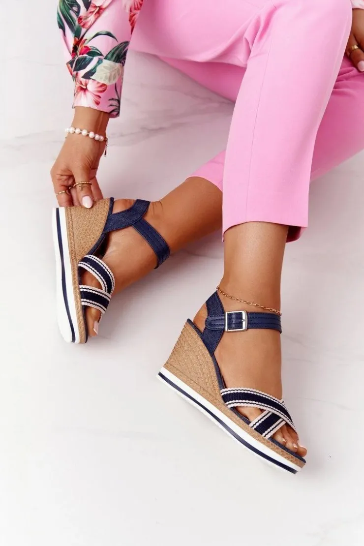 Piękne oraz wygodne sandały na koturnie wykonane z połączenia eko skóry, oraz tkaniny. Buty posiadają miękką wkładkę ze skóry ekologicznej. Modny fason w marynarskim stylu urozmaici Twoją letnią garderobę! Koniecznie sprawdź całą naszą kolekcję damskich sandałów. Przy wyborze rozmiaru prosimy sugerować się tabelą rozmiarów.
